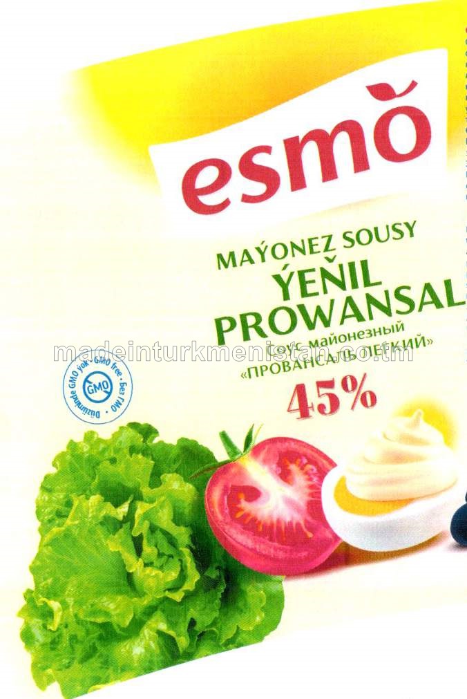 "Ýeňil Prowansal" maýonez sousy ýaglylygy 45%. Gomogenleşdirilen