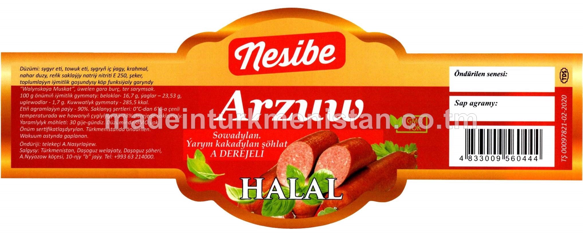 "Arzuw" sowadylan gaýnadylan şöhlat poliamid barýerli örtükde A derejeli (Halal)