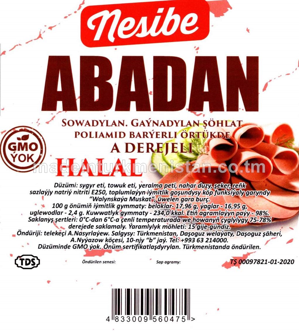"Abadan" sowadylan gaýnadylan şöhlat poliamid barýerli örtükde A derejeli (Halal)