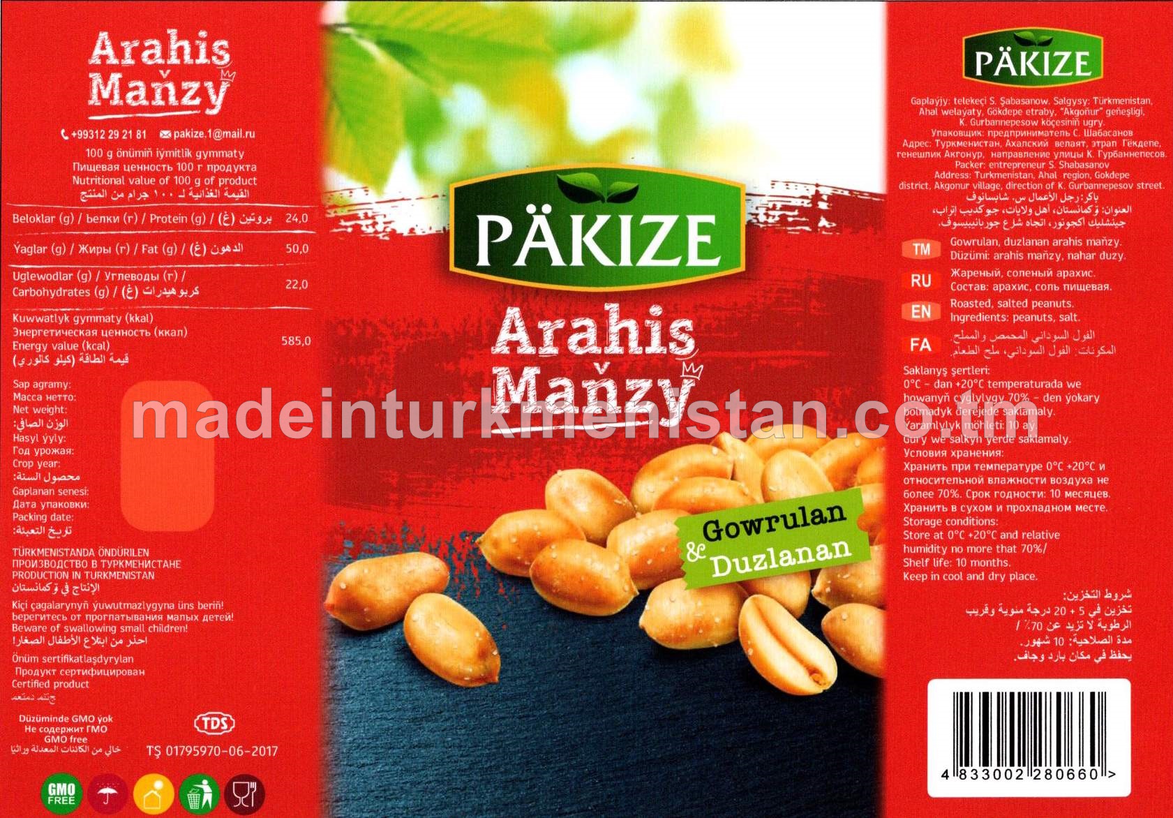 Gowrulan duzlanan arahis maňzy (Türkmenistanda öndürilen)