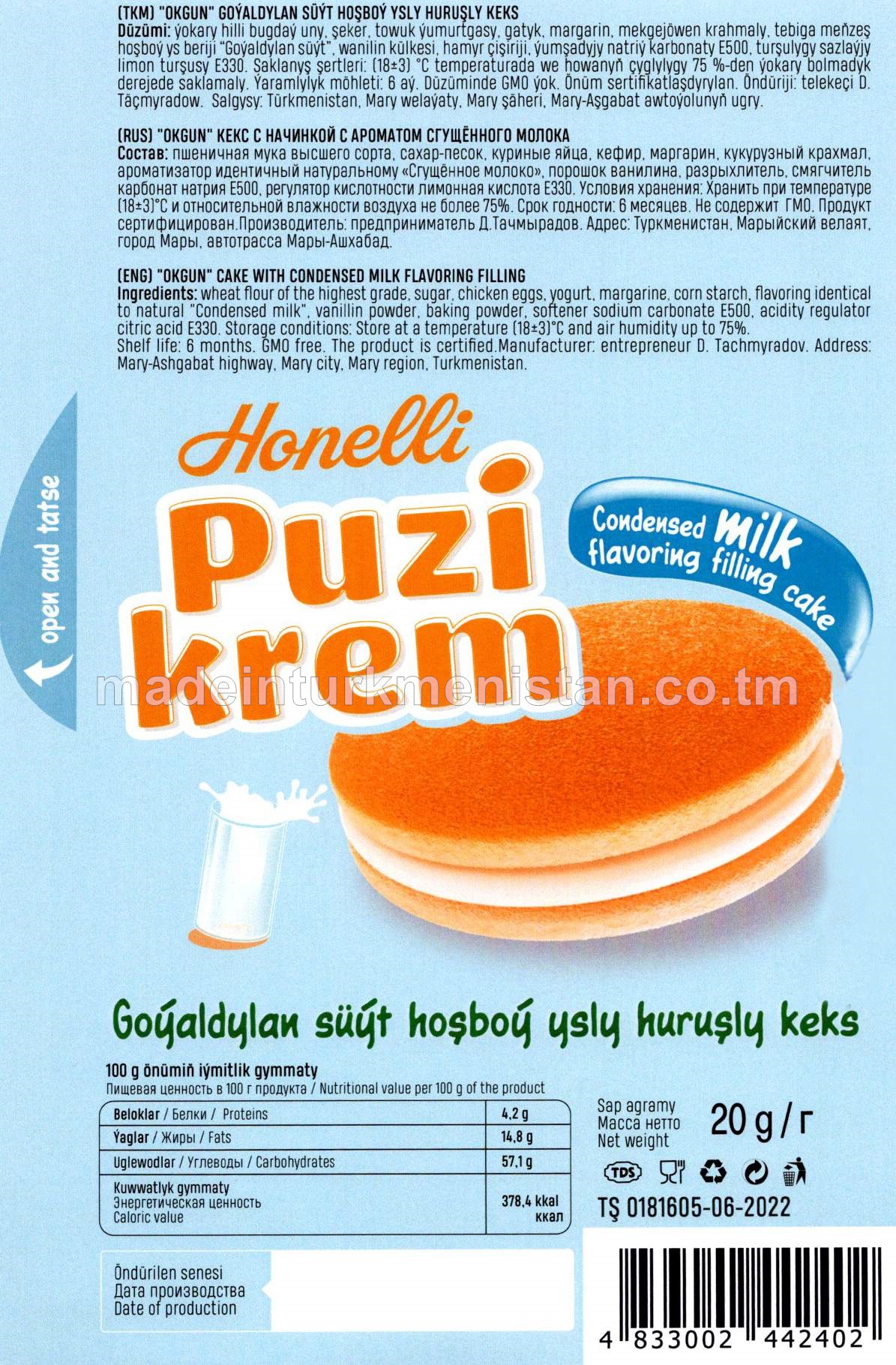 Honelli goýaldylan süýt hoşboý ysly huruşly keks