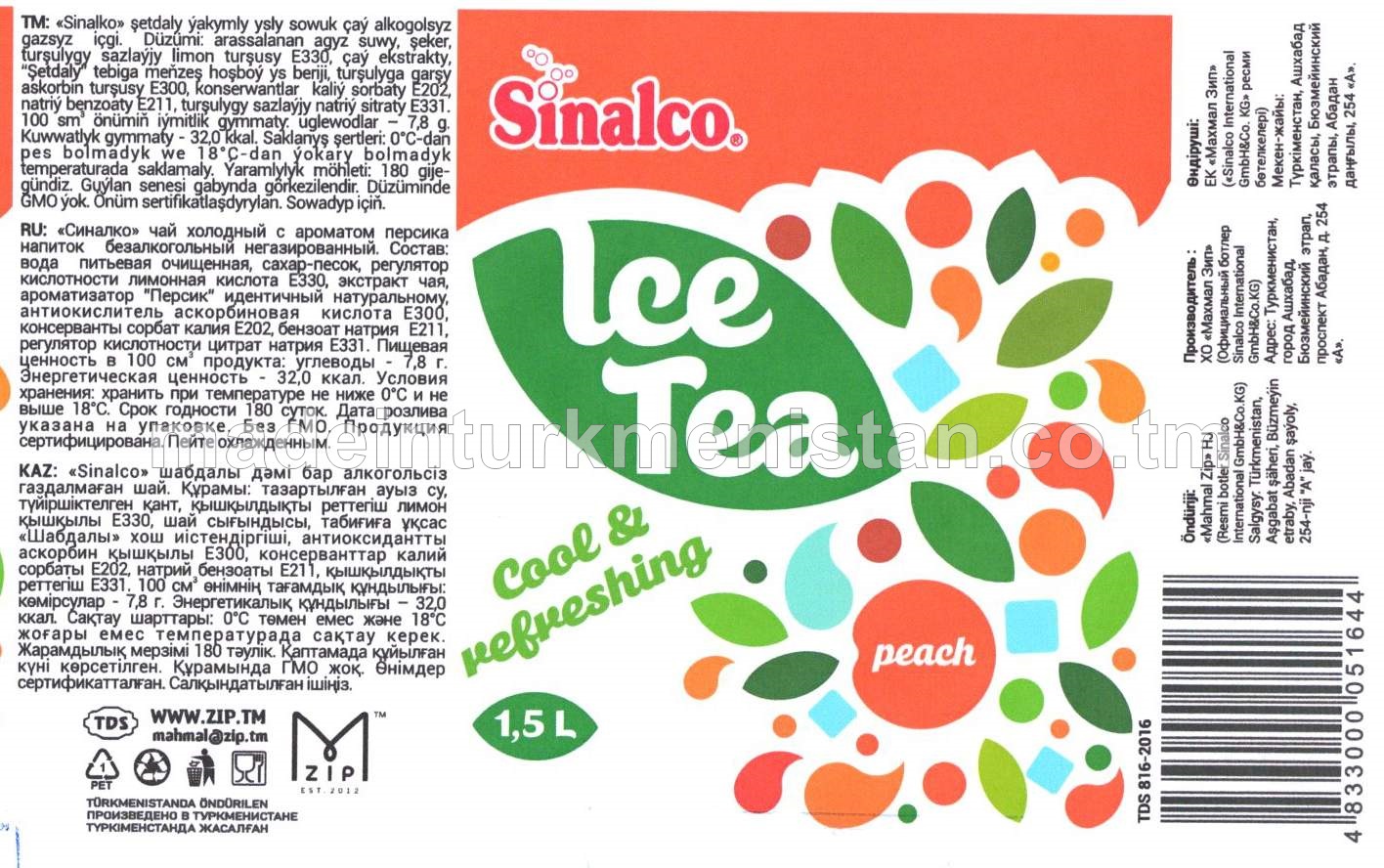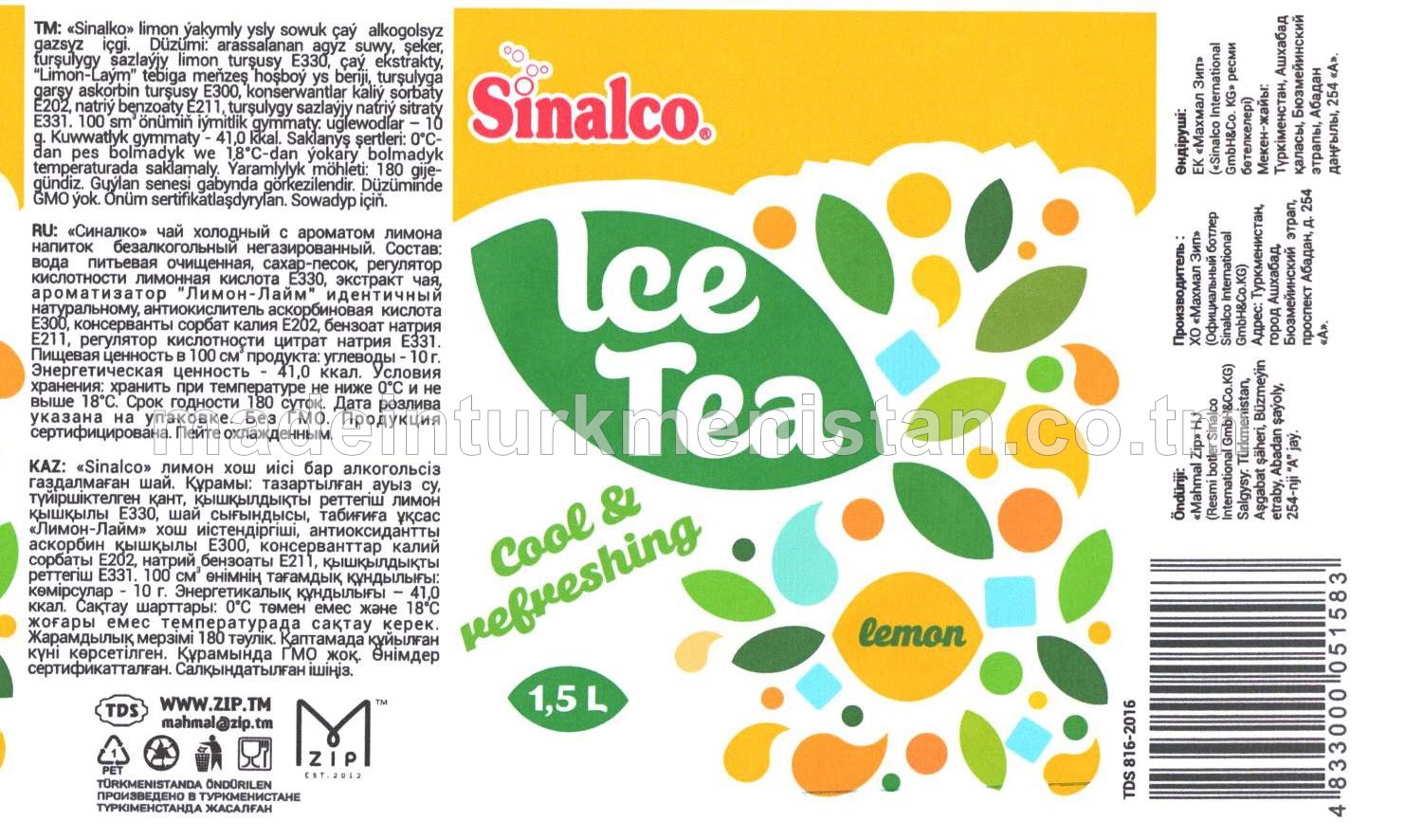 "Sinalco Çay" limon ýakymly ysly sowuk çaý alkogolsyz içgi (demir guty)