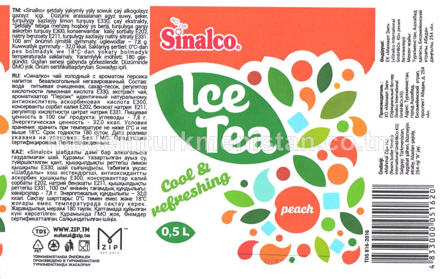 "Sinalco Çay" şetdaly ýakymly ysly sowuk çaý alkogolsyz içgi (PET)