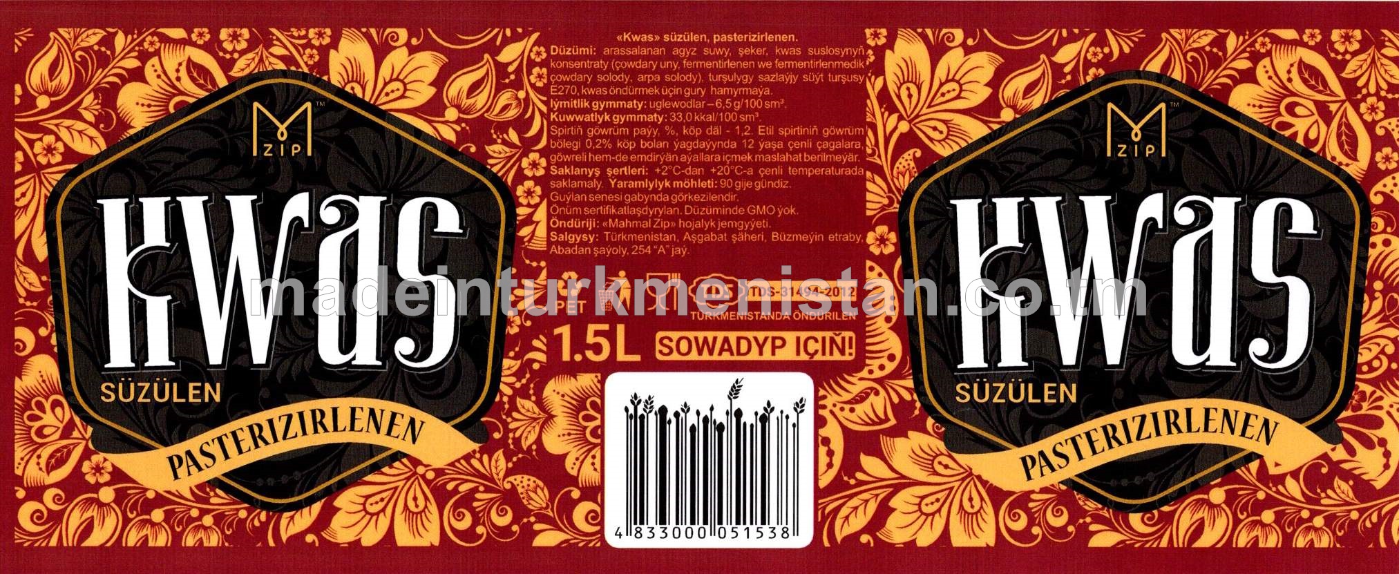 "Kwas" süzülen pasterizirlenen (0.5L)