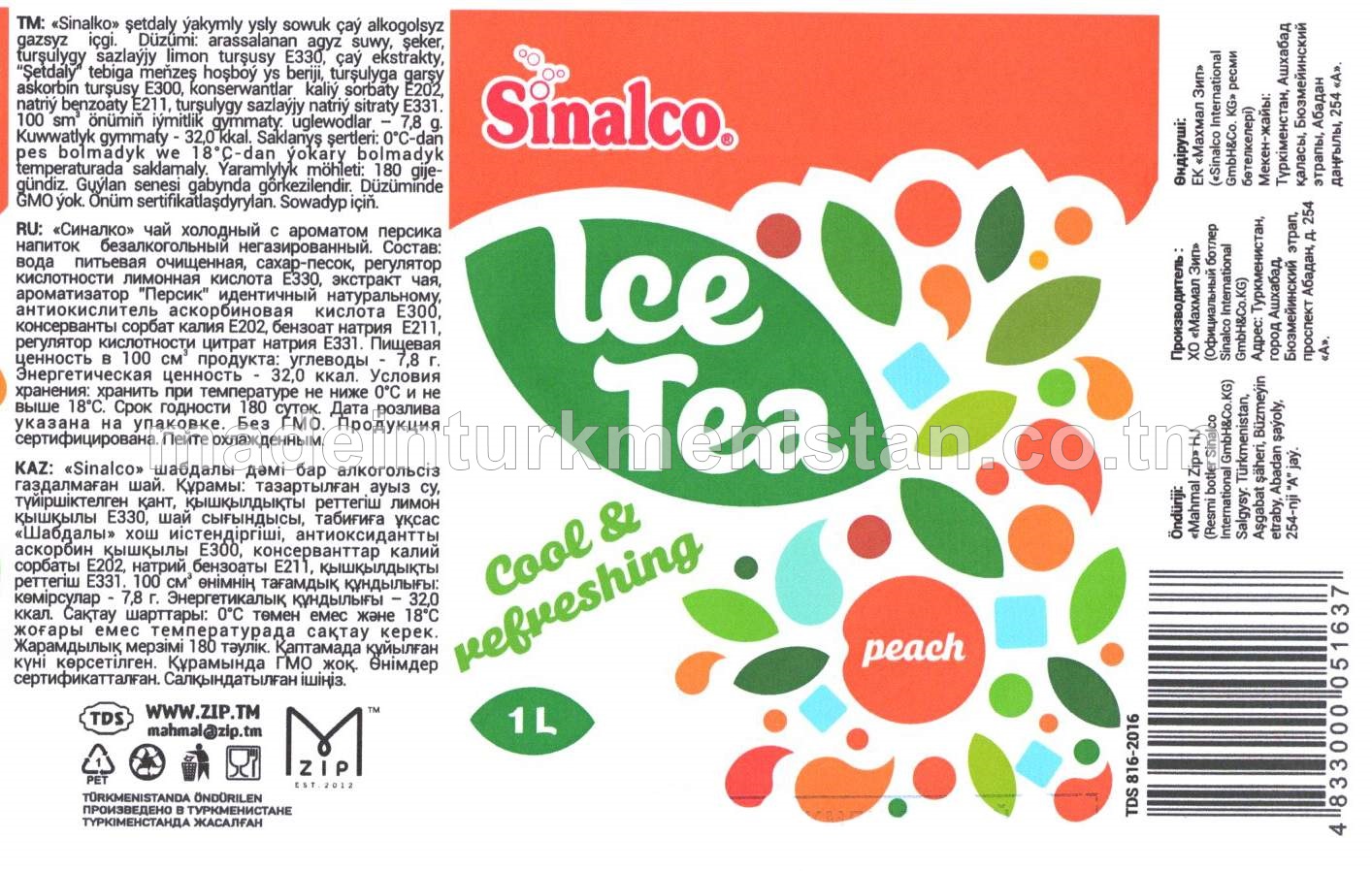 "Sinalco Çay" şetdaly ýakymly ysly sowuk çaý alkogolsyz içgi (demir guty)