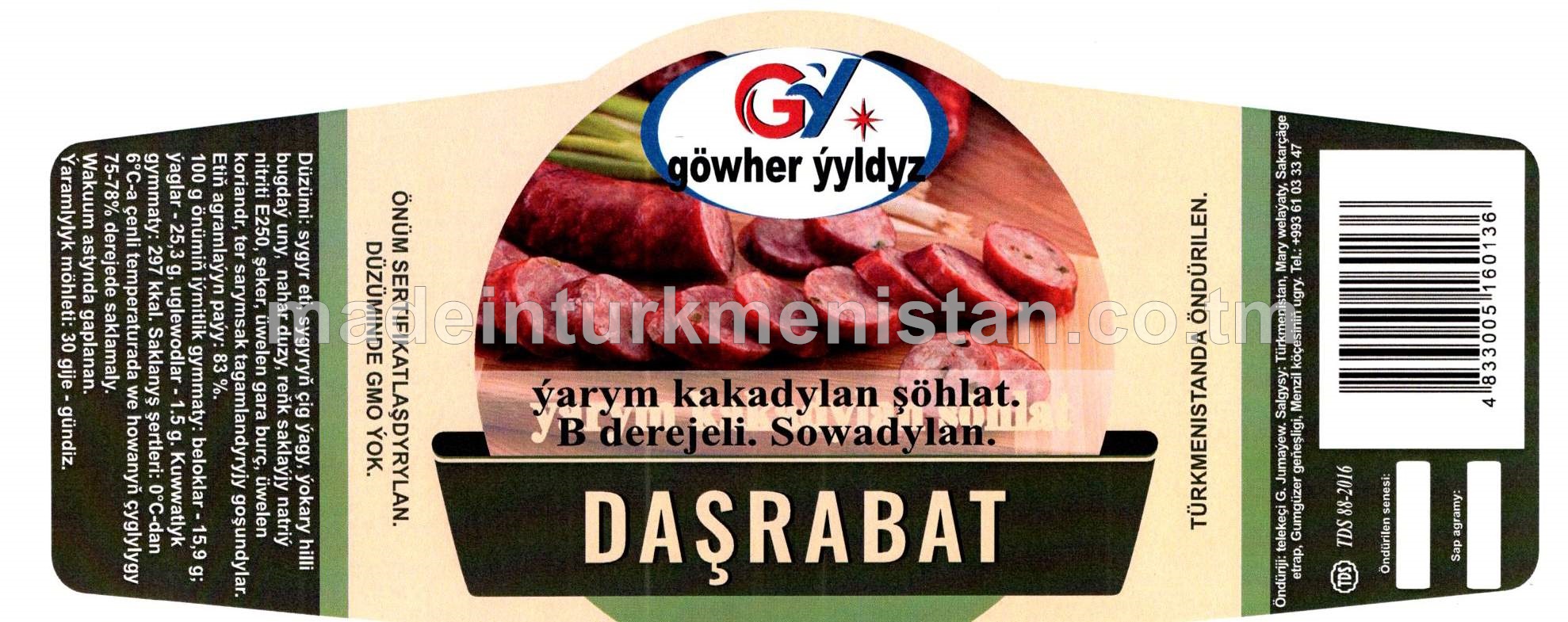 "Daşrabat" ýarym kakadylan şöhlat. B derejeli. Sowadylan