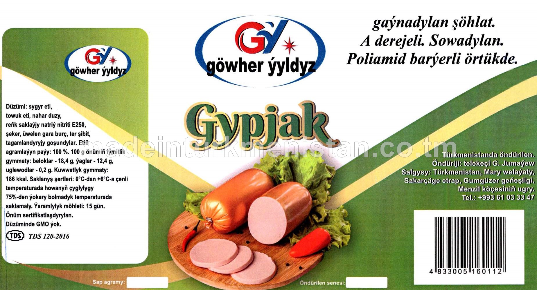 "Gypjak" gaýnadylan şöhlat A derejeli. Sowadylan