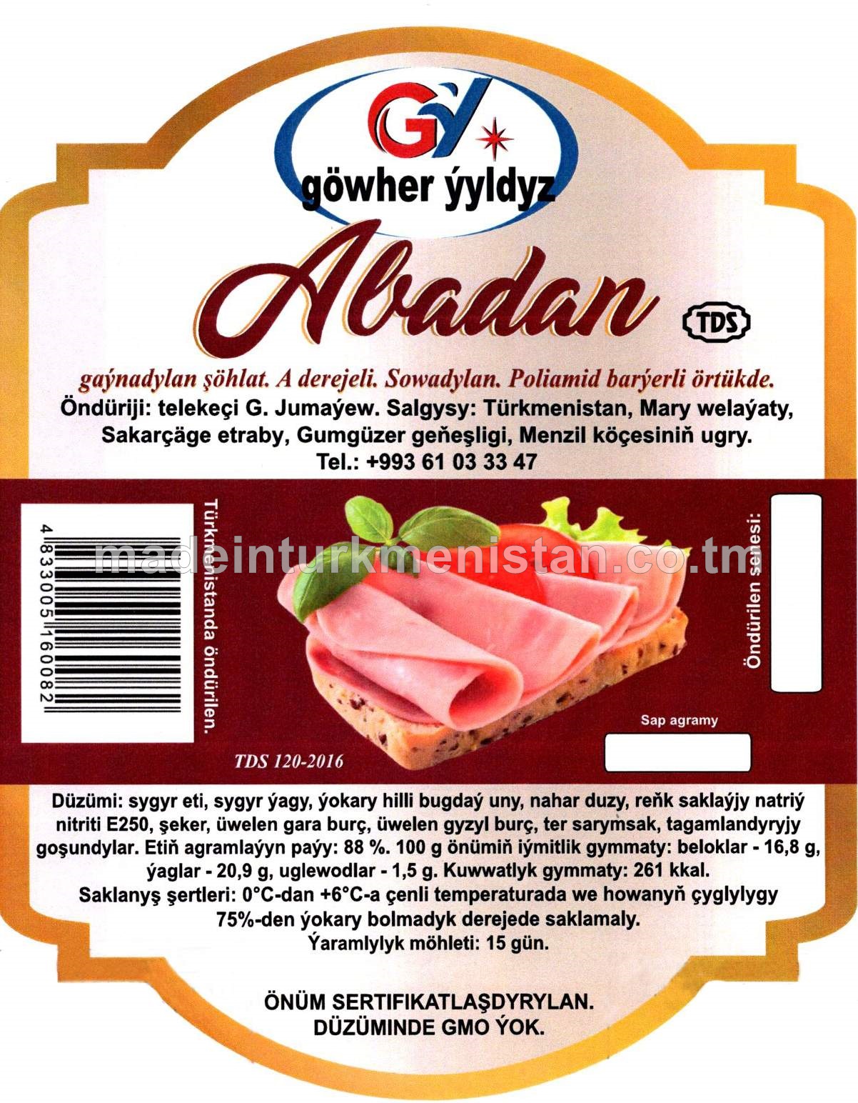 "Abadan" gaýnadylan şöhlat. A derejeli. Sowadylan