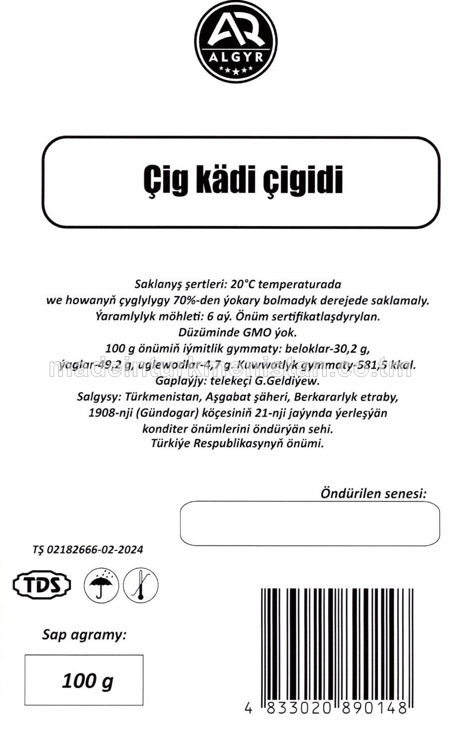 Çig kädi çigidi (Türkiýe Respublikasynyň önümi)