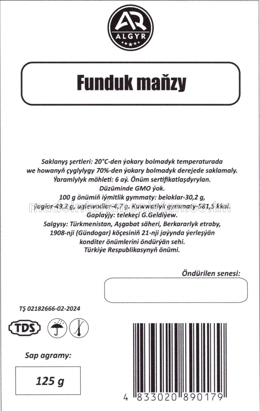 Funduk maňzy (Türkiýe Respublikasynyň önümi)