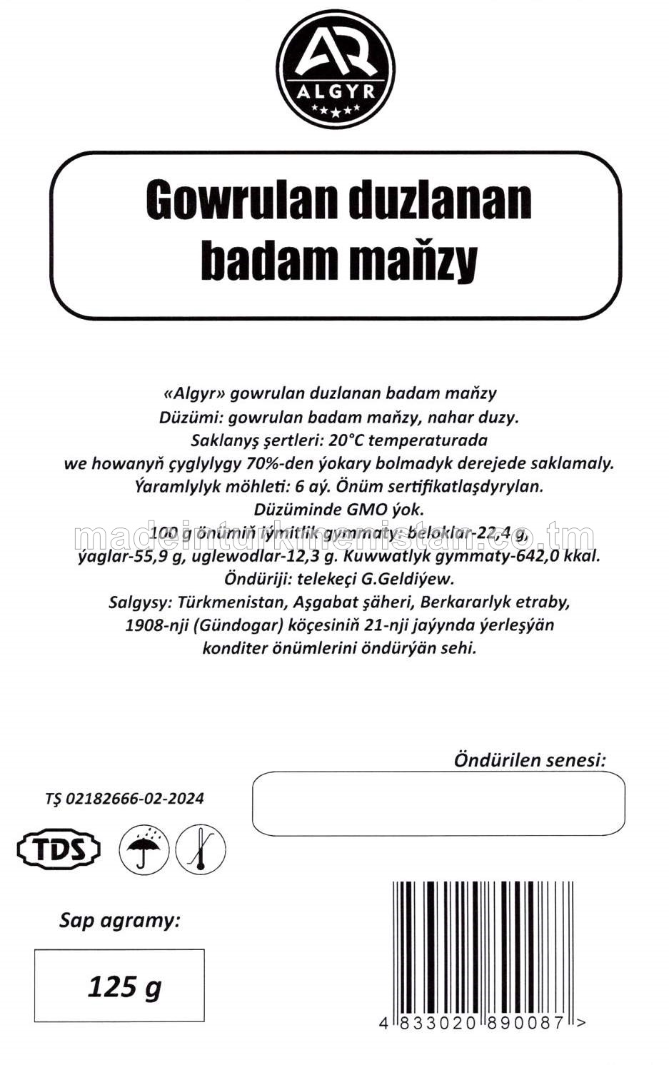 Badam maňzy (Türkiýe Respublikasynyň önümi)