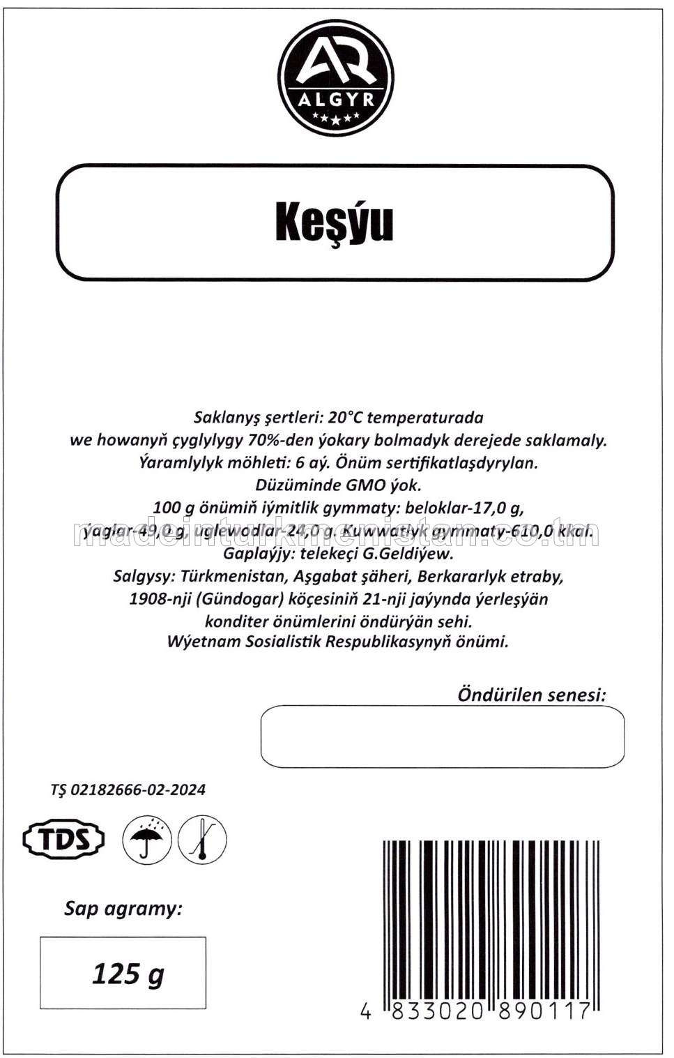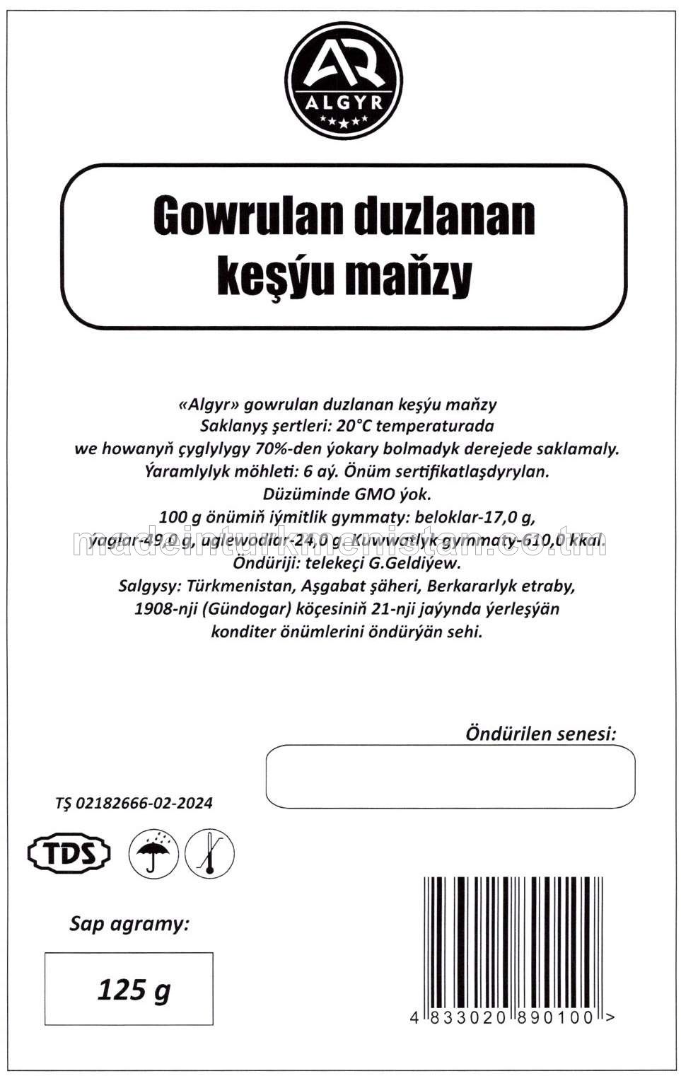 Gowrulan duzlanan keşýu maňzy
