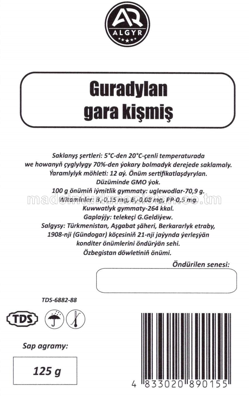 Guradylan gara kişmiş (Özbegistan döwletiniň önümi)