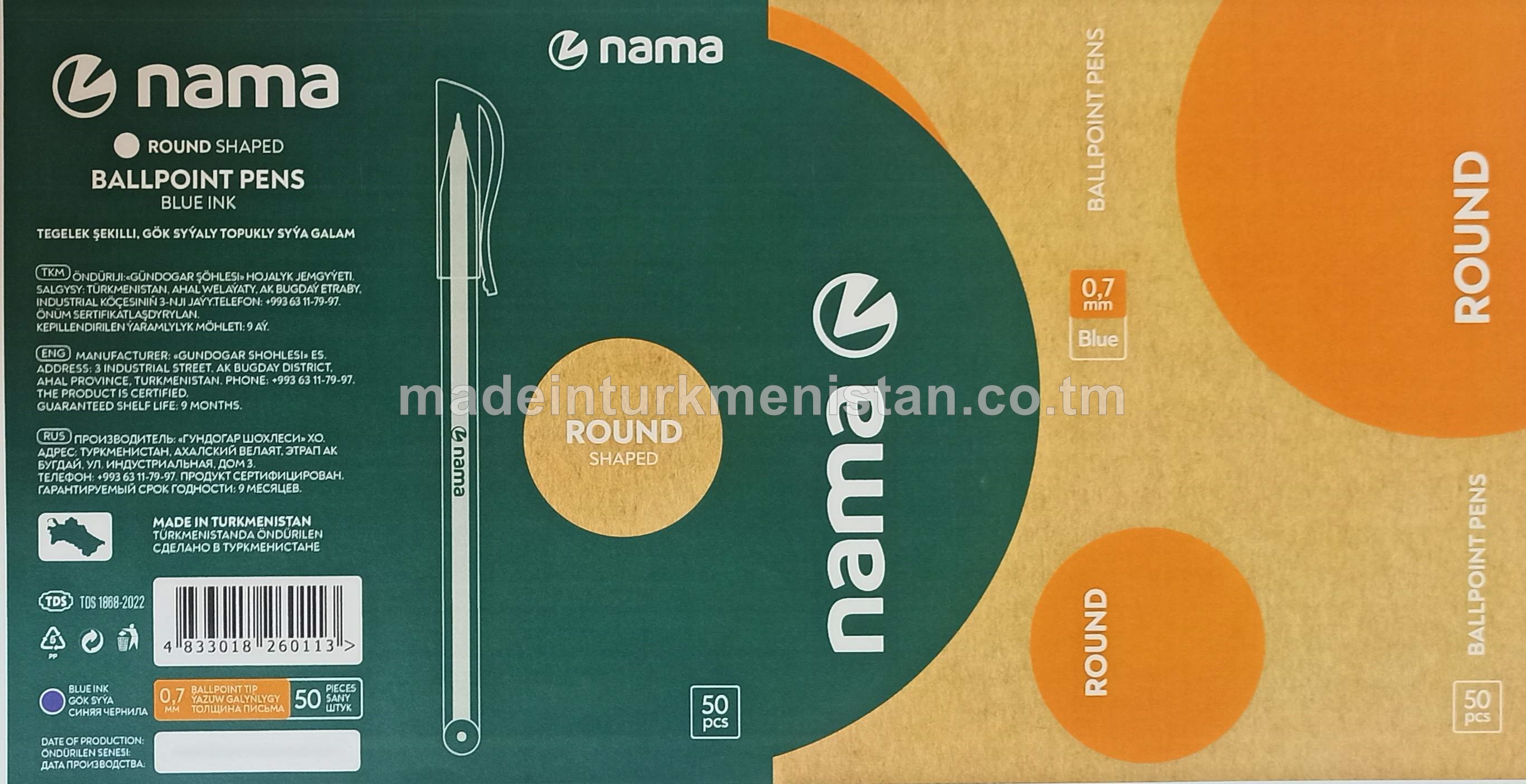 Tegelek burma şekilli, gök syýaly topukly syýa galam, 0.7 mm