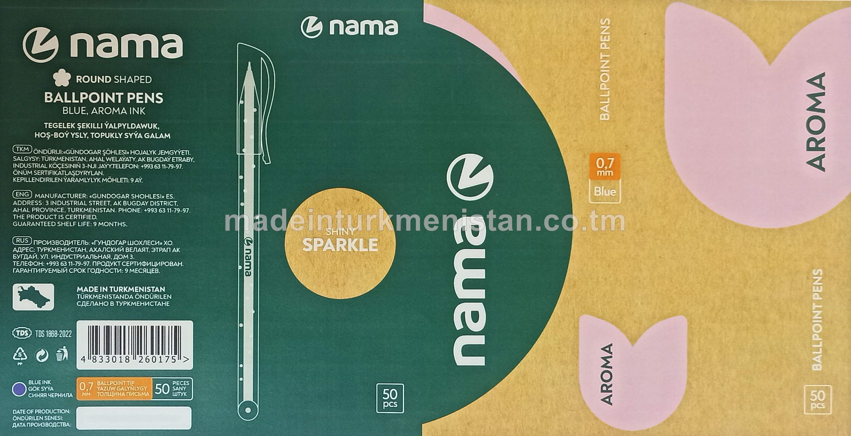 Tegelek şekilli ýalpyldawuk, hoş-boý ysly, topukly syýa galam, 0.7 mm, gök syýa