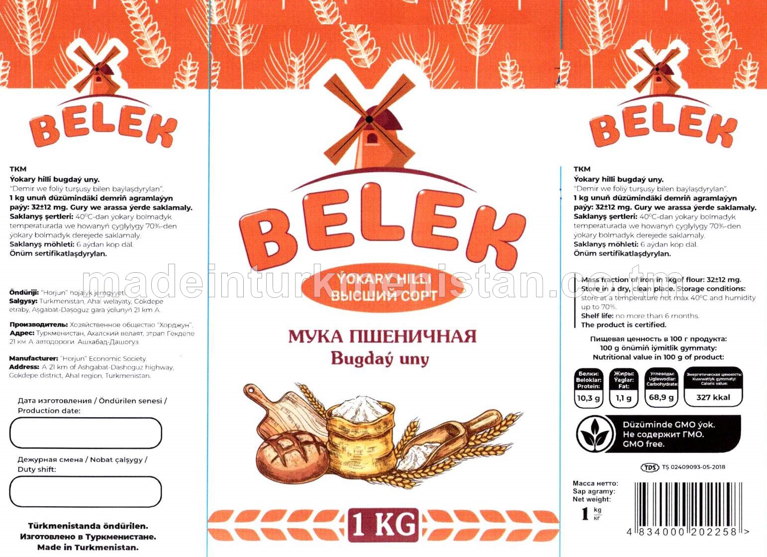 Ýokary hilli bugdaý uny. Demir we foliý turşusy bilen baylaşdyrylan.
