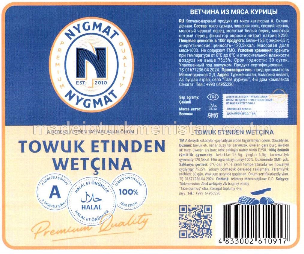 "Towuk etinden wetçina" A derejeli kakadylan-gaýnadylan etden taýýarlanýan önüm. Sowadylan (çekimli)