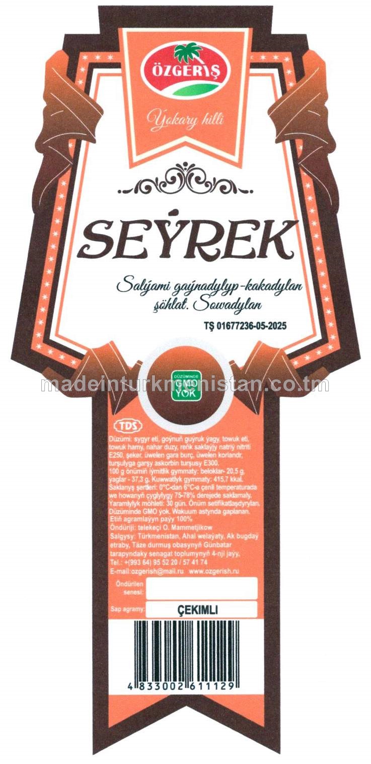 "Seýrek" salýami gaýnadylyp-kakadylan şöhlat. Sowadylan (çekimli)