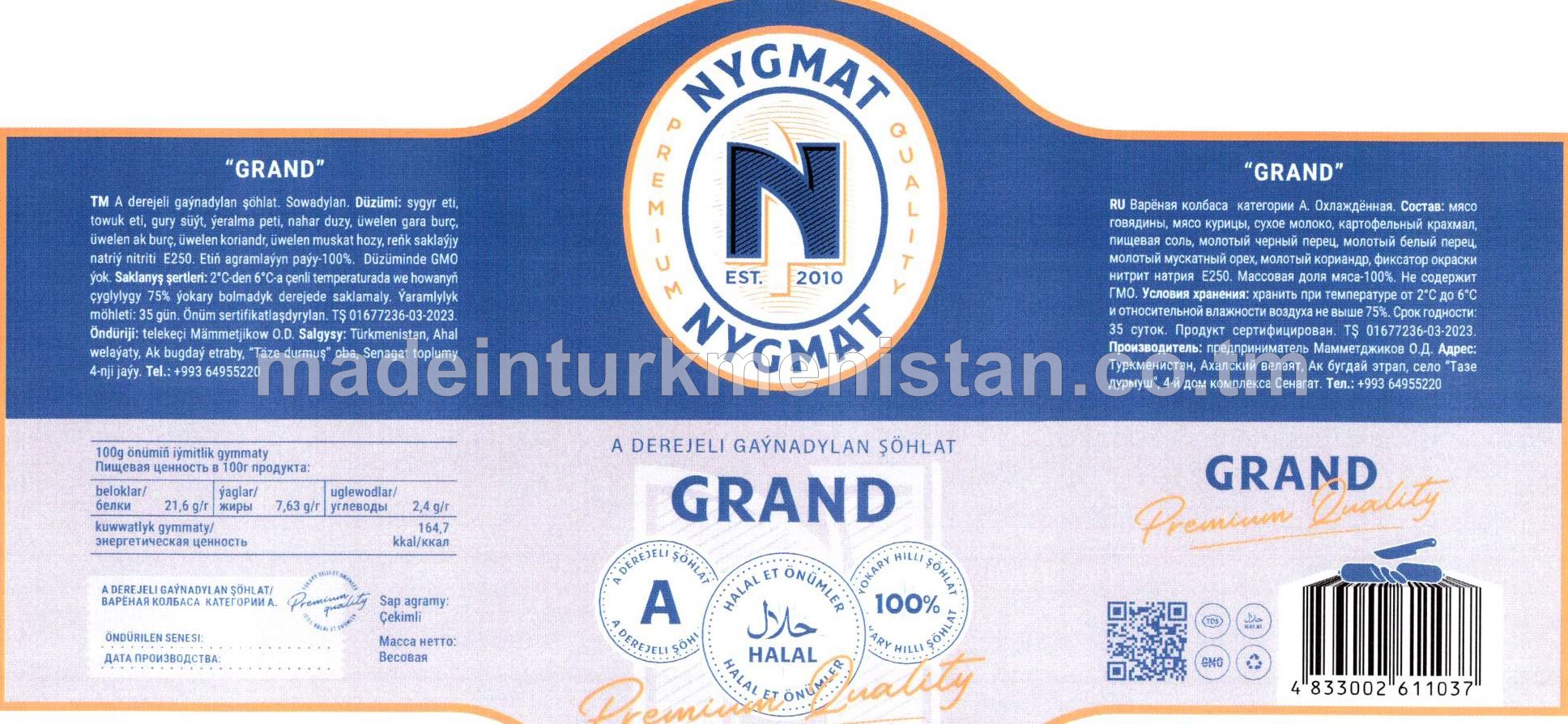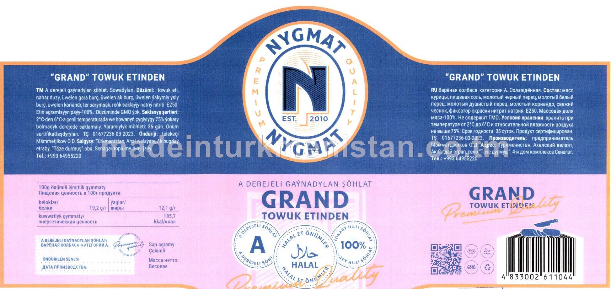 “Grand” towuk etinden A derejeli gaýnadylan şöhlat (çekimli)