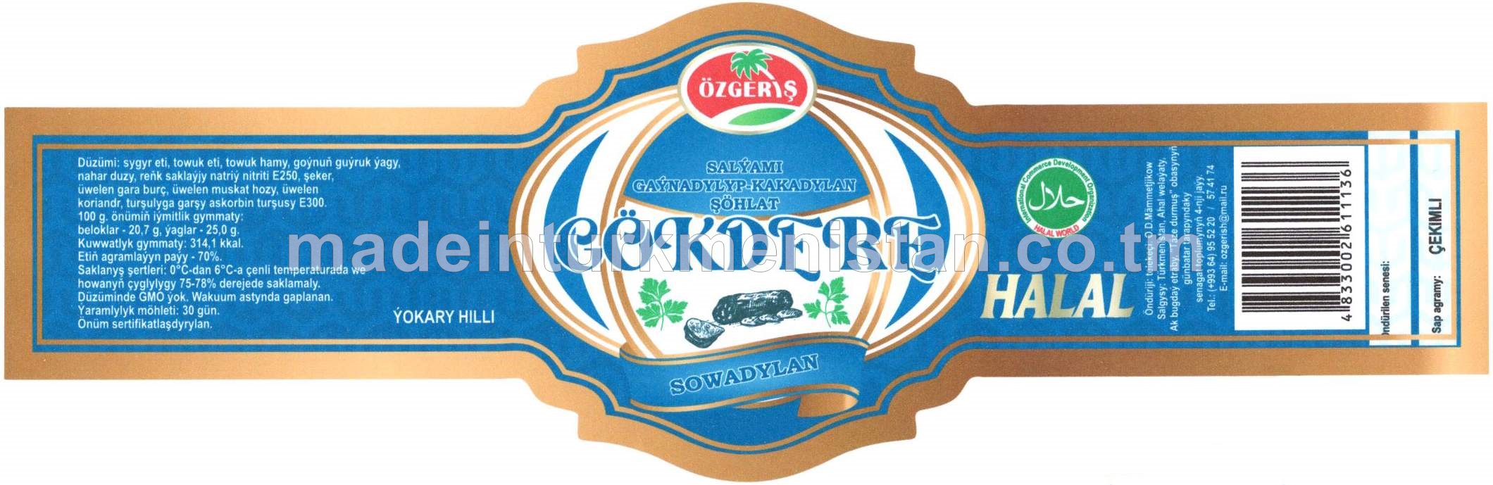 Gökdepe" salýami gaýnadylan-kakadylan şöhlat. HALAL