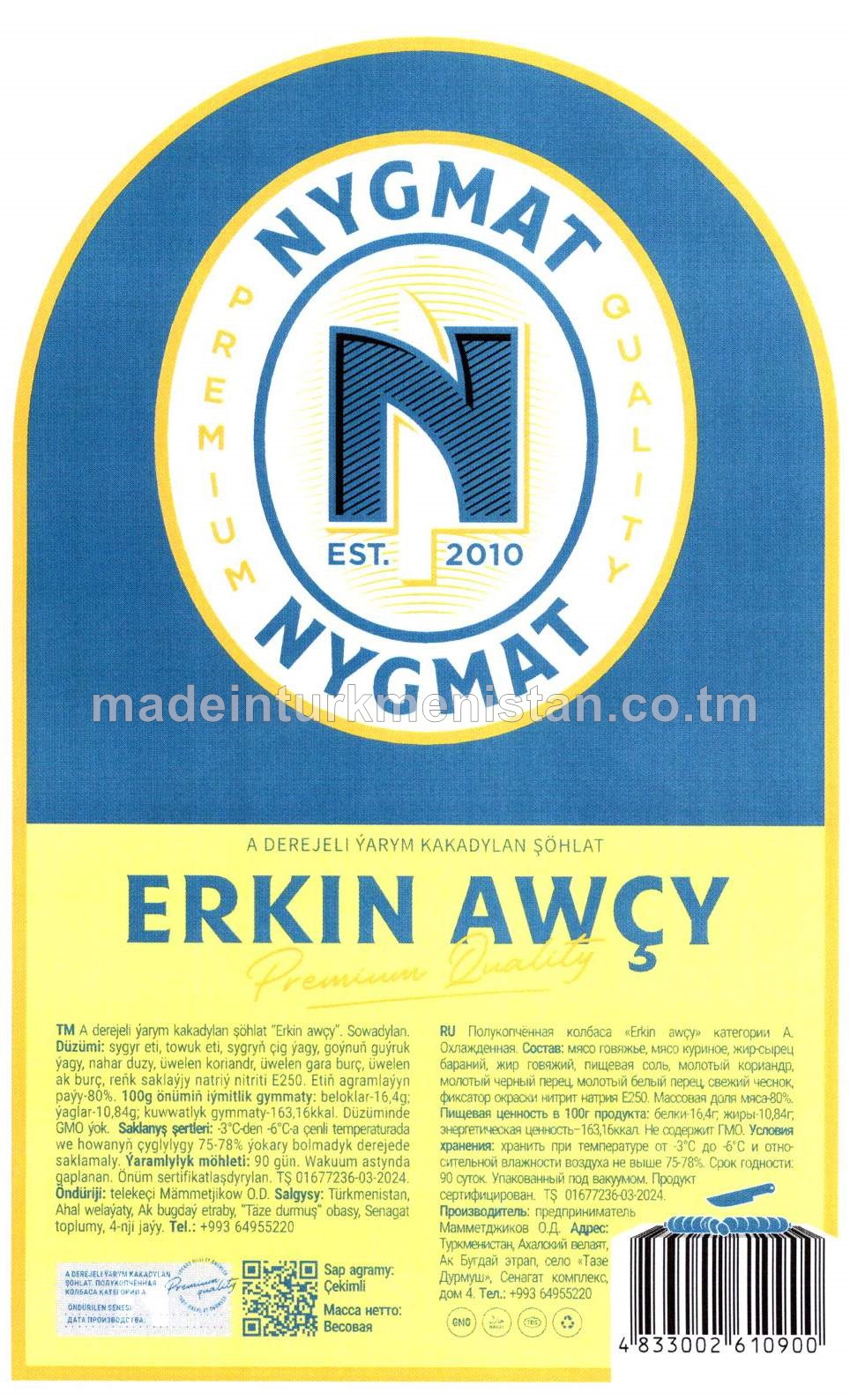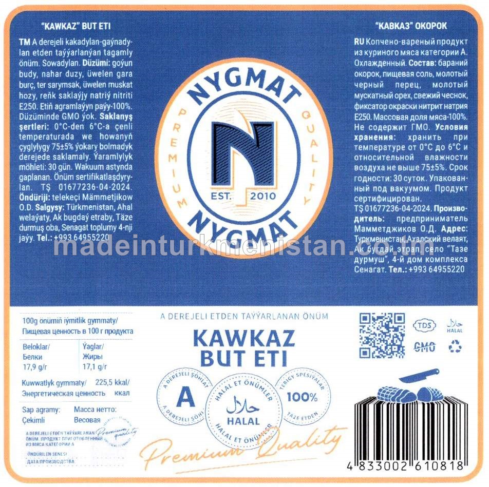 “Kawkaz" but eti A derejeli kakadylan-gaýnadylan etden taýýarlanan tagamly önüm. Sowadylan (çekimli)