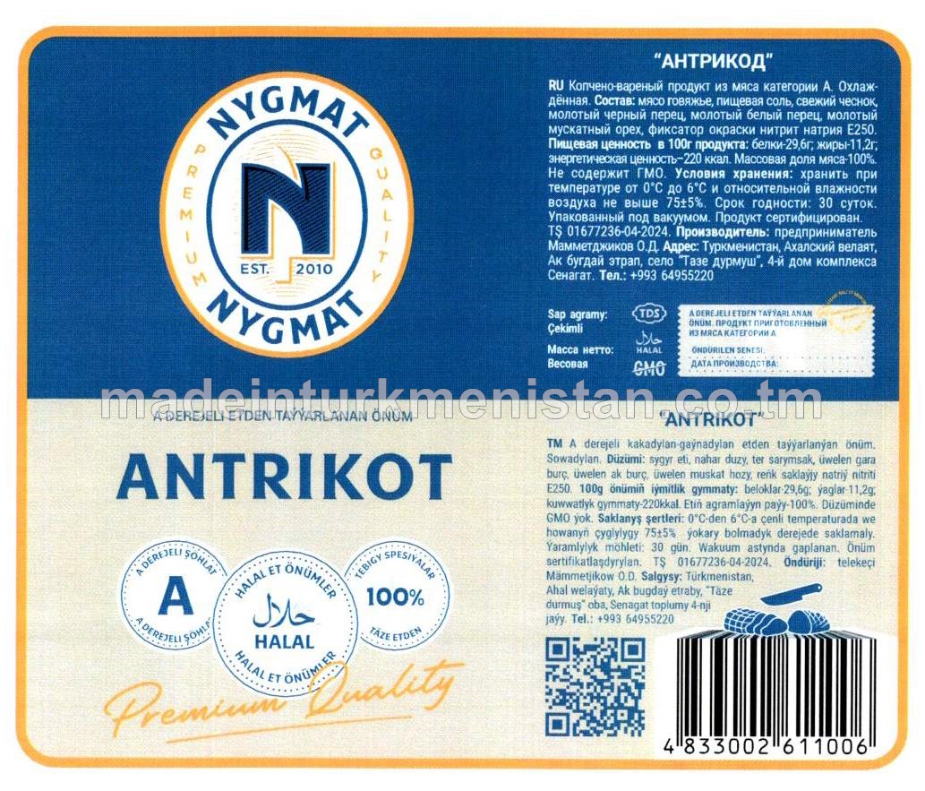 "Antrikot" A derejeli etden taýýarlanan önüm (çekimli)