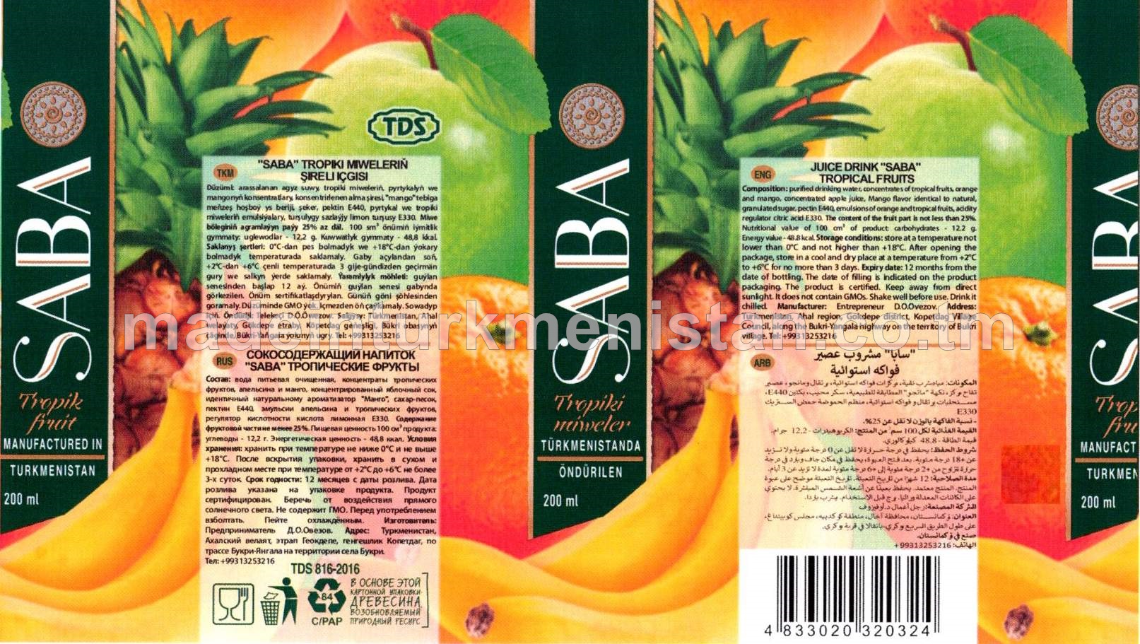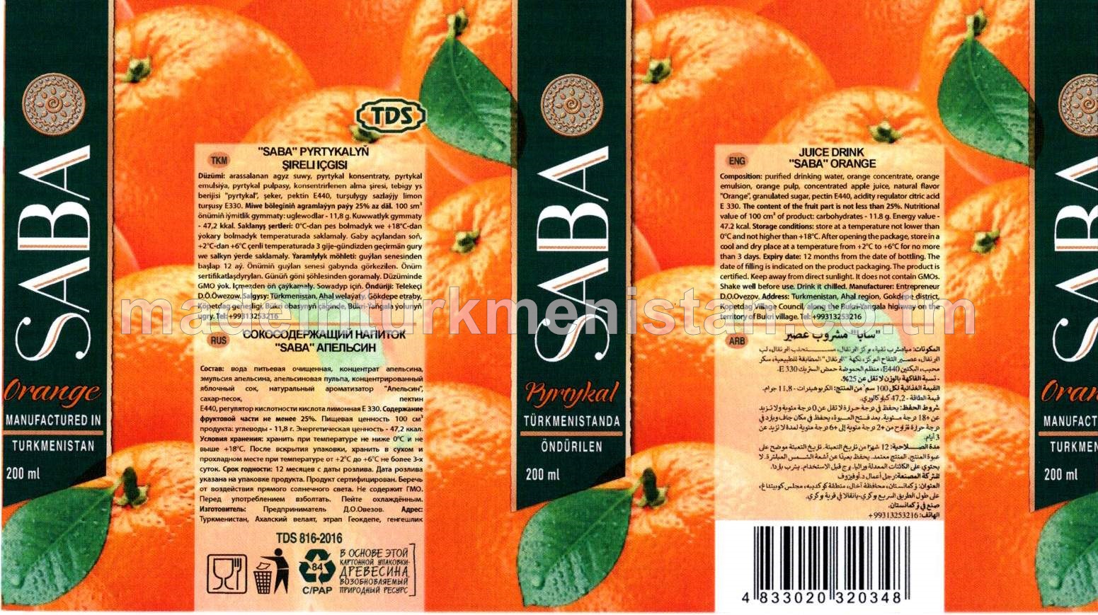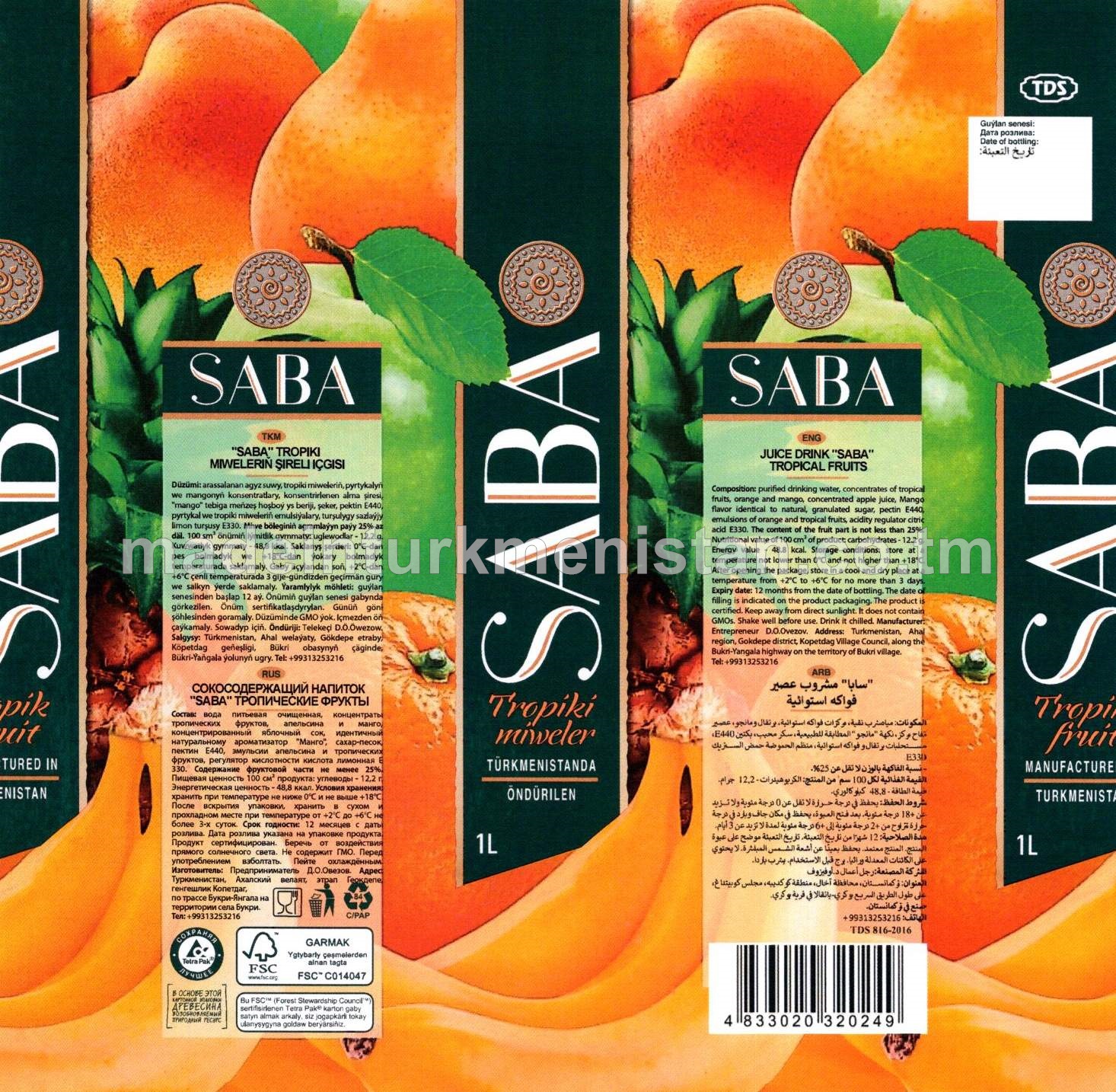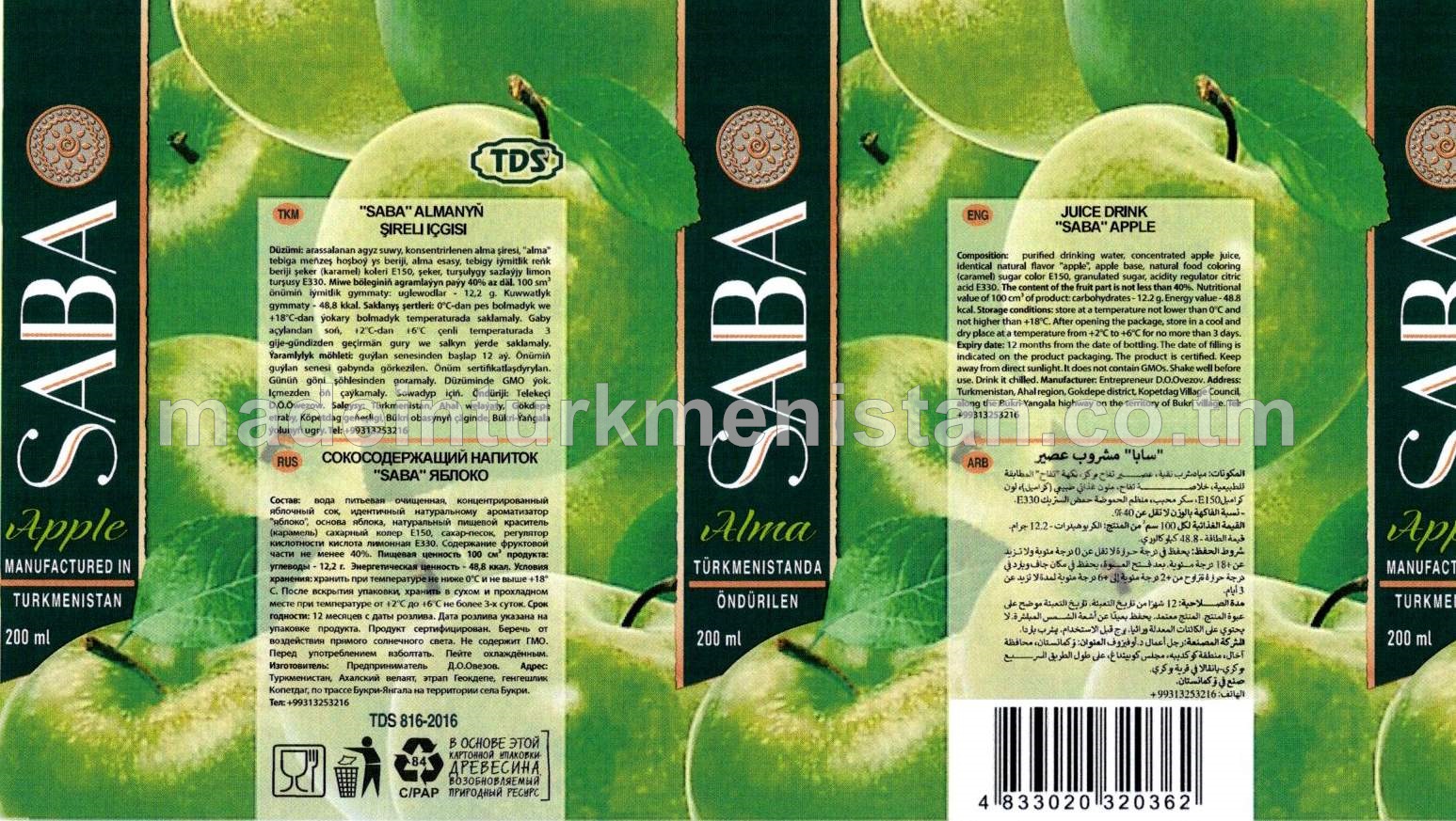 «Saba» zirk witaminleşdirilen alkogolsyz gazlandyrylan içgi 2 görnüş
