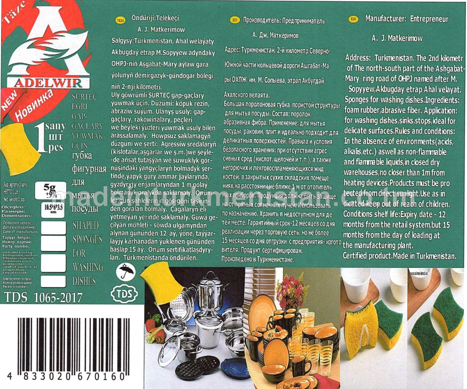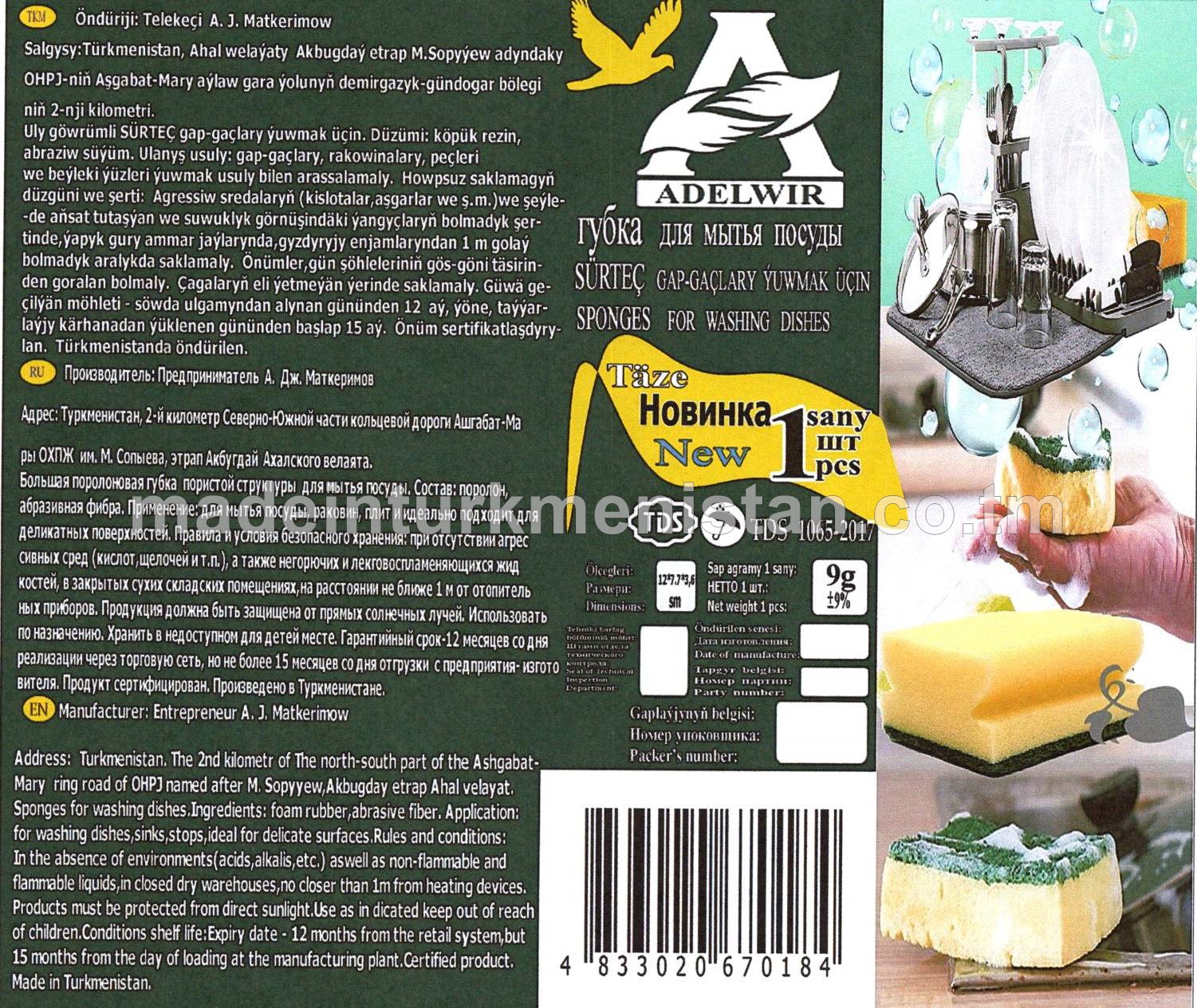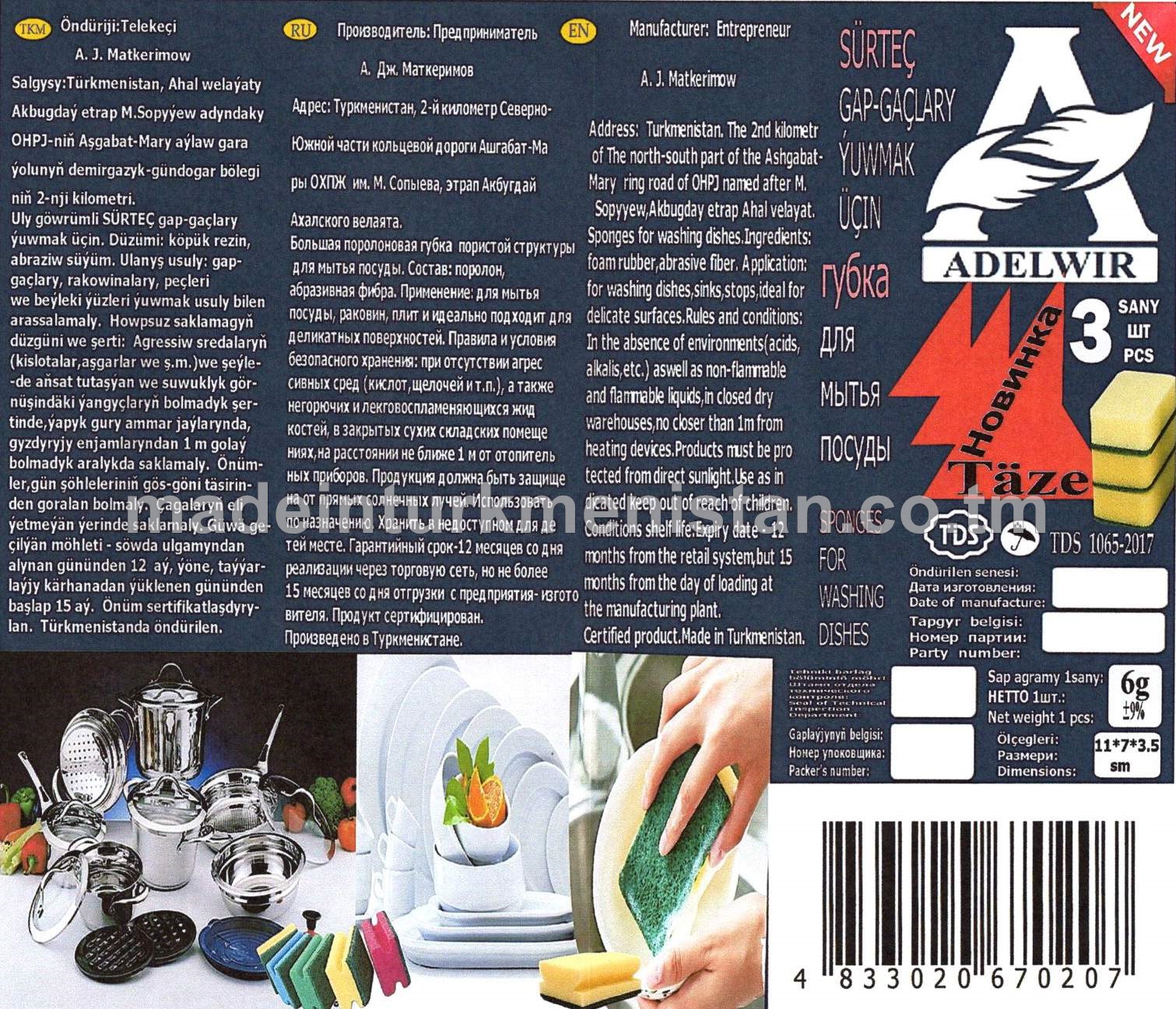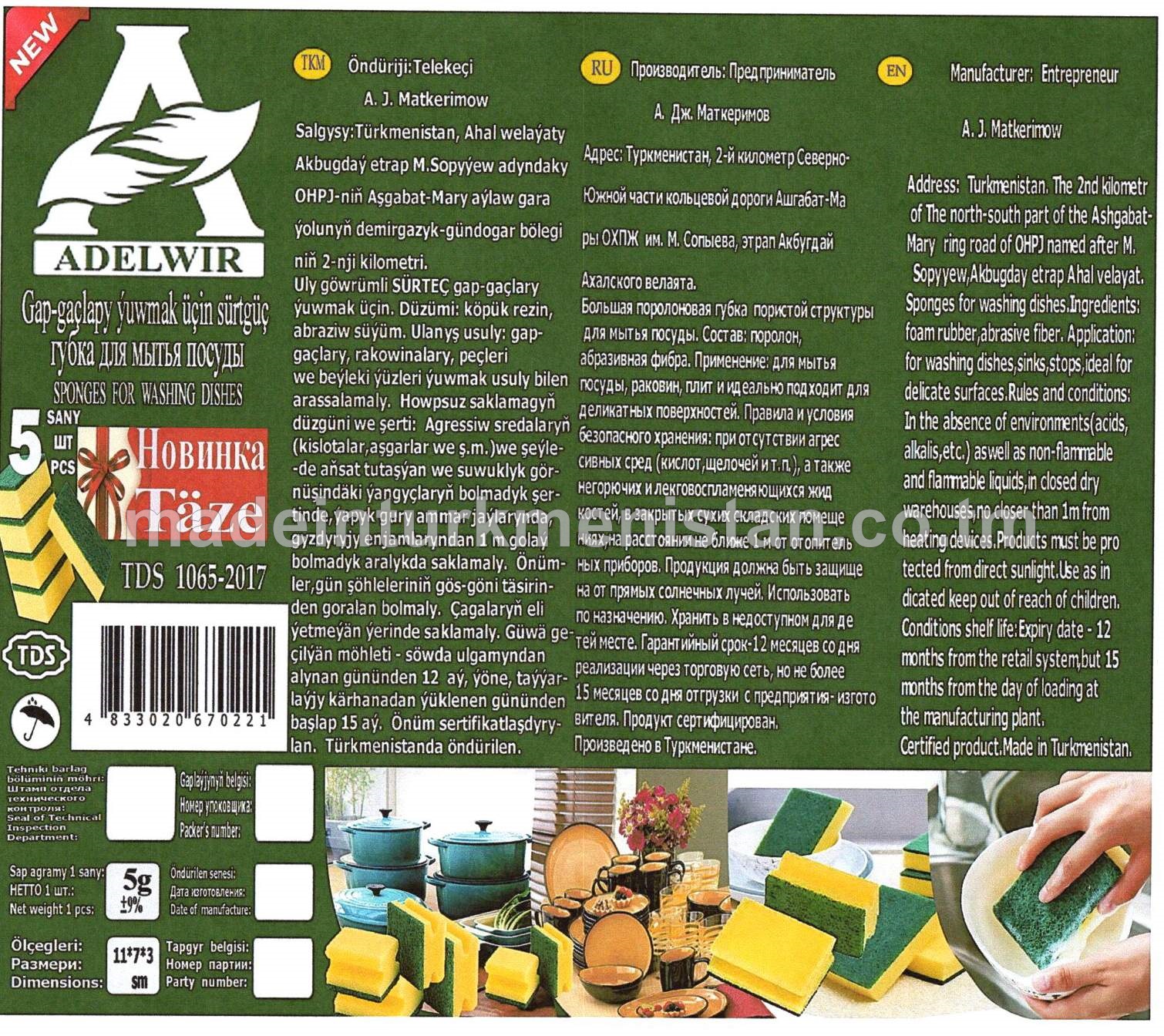 Gap-gaçlary ýuwmak üçin Sürtgüç (11*7*3sm) agramy-5g