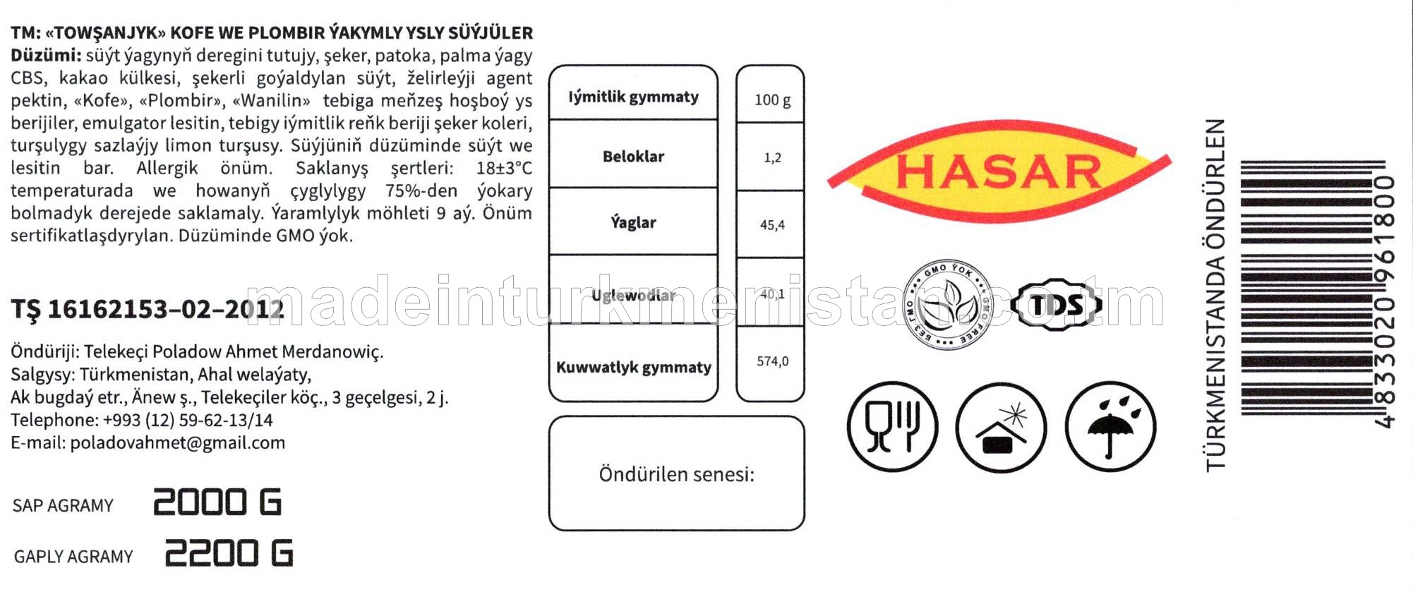 «TOWŞANJYK» Kofe we plombir ýakymly ysly süýjüler
