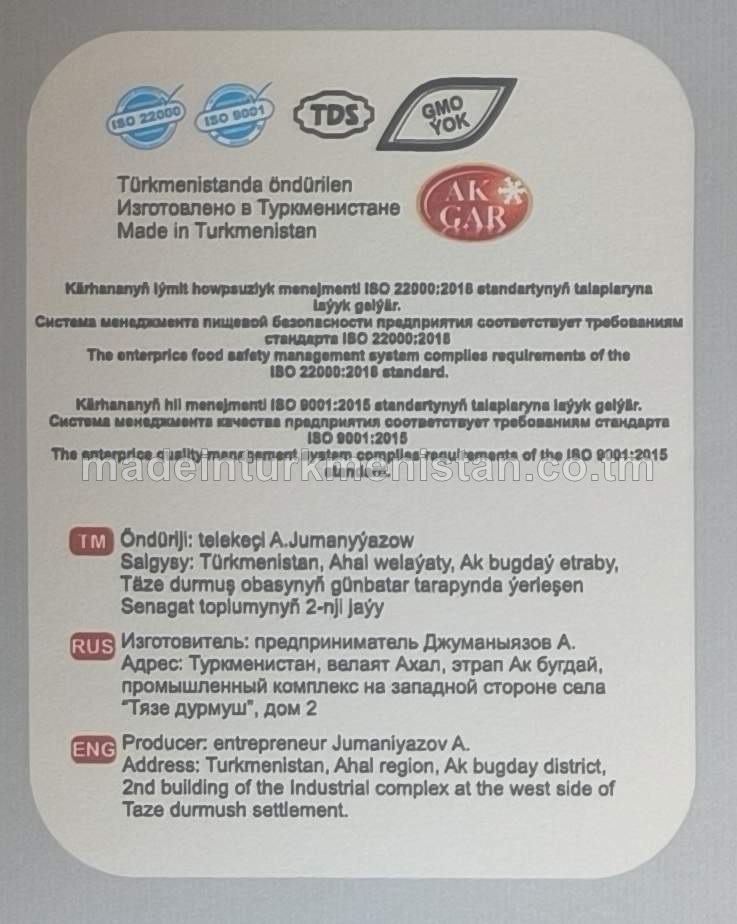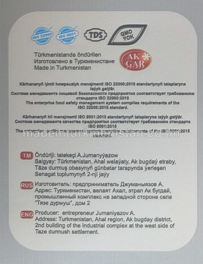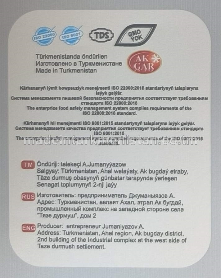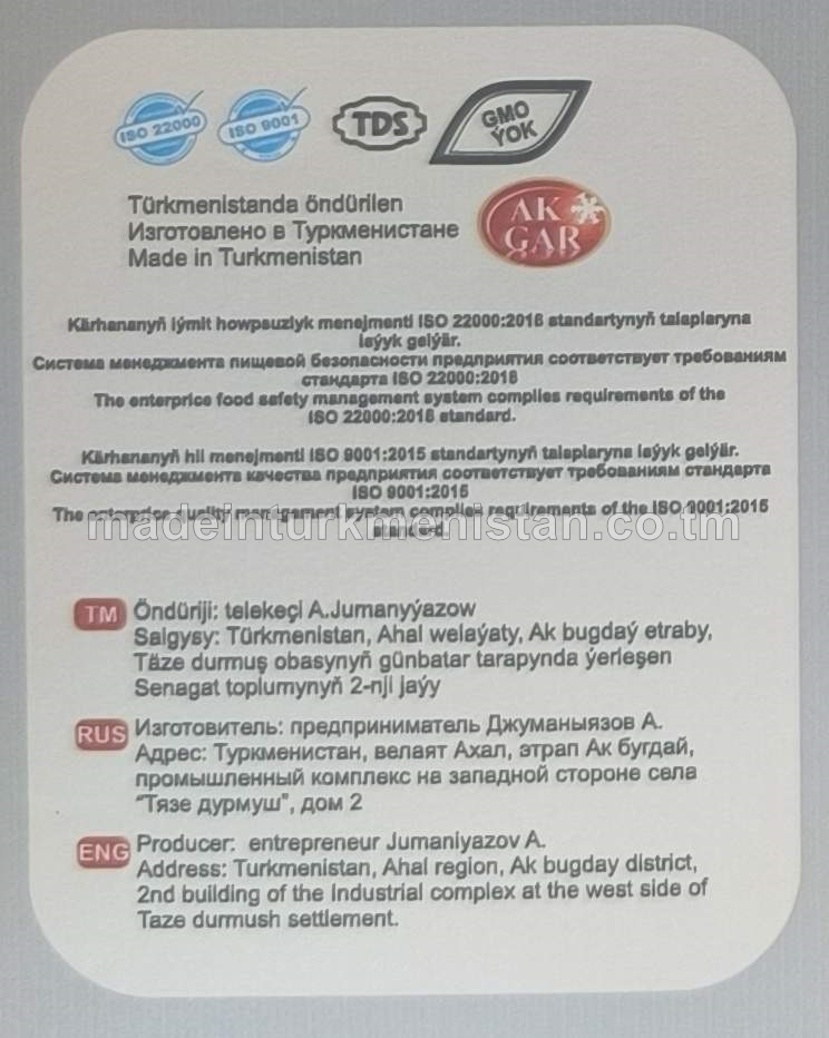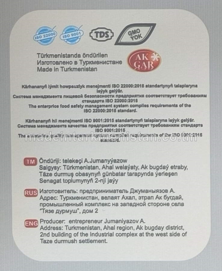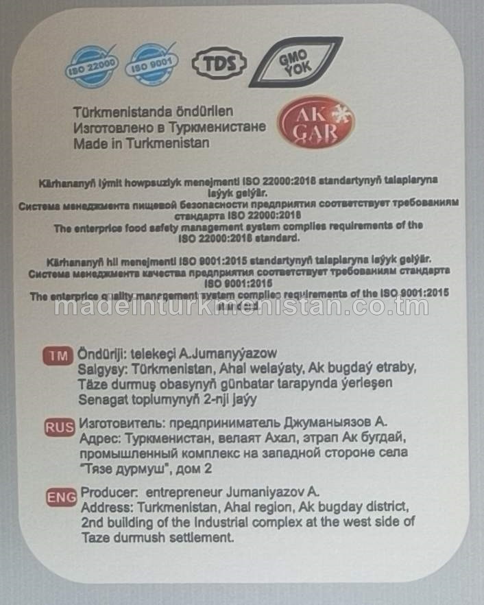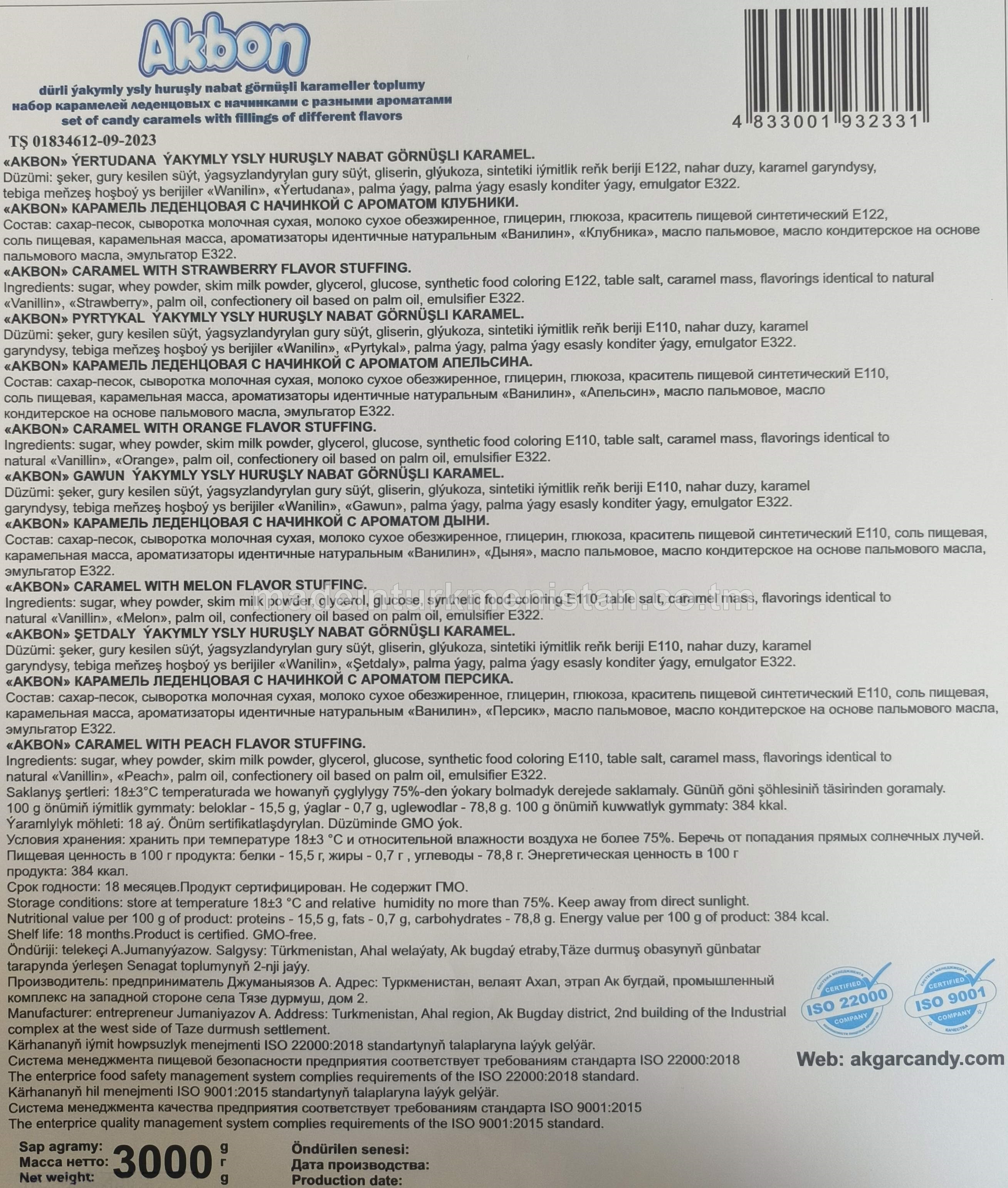 "Akbon" dürli ýakymly ysly huruşly nabat görnüşli karameller toplumy (ýertudana, pyrtykal, gawun, şetdaly)