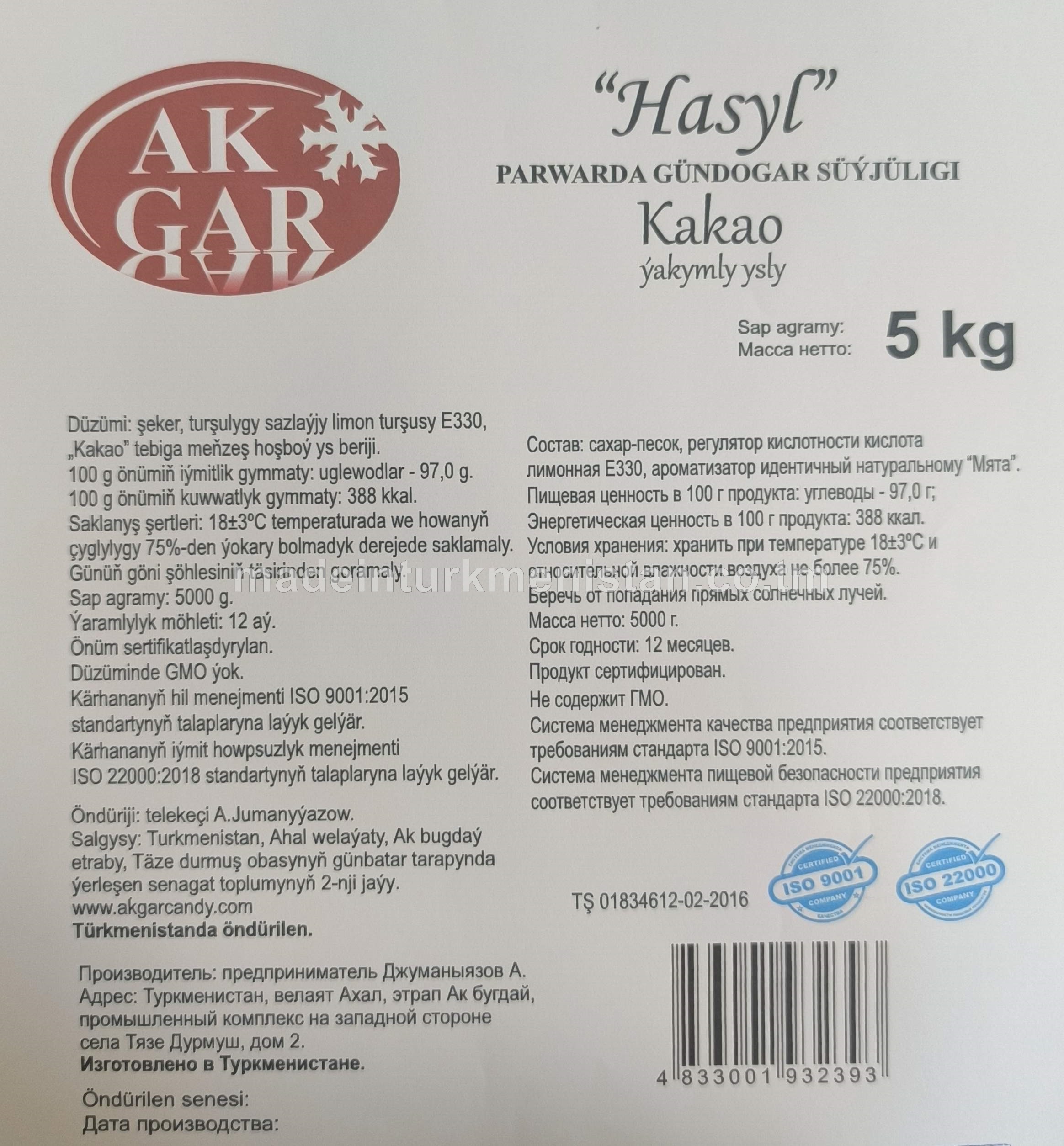 "Hasyl" parwarda gündogar süýjüligi Kakao ýakymly ysly