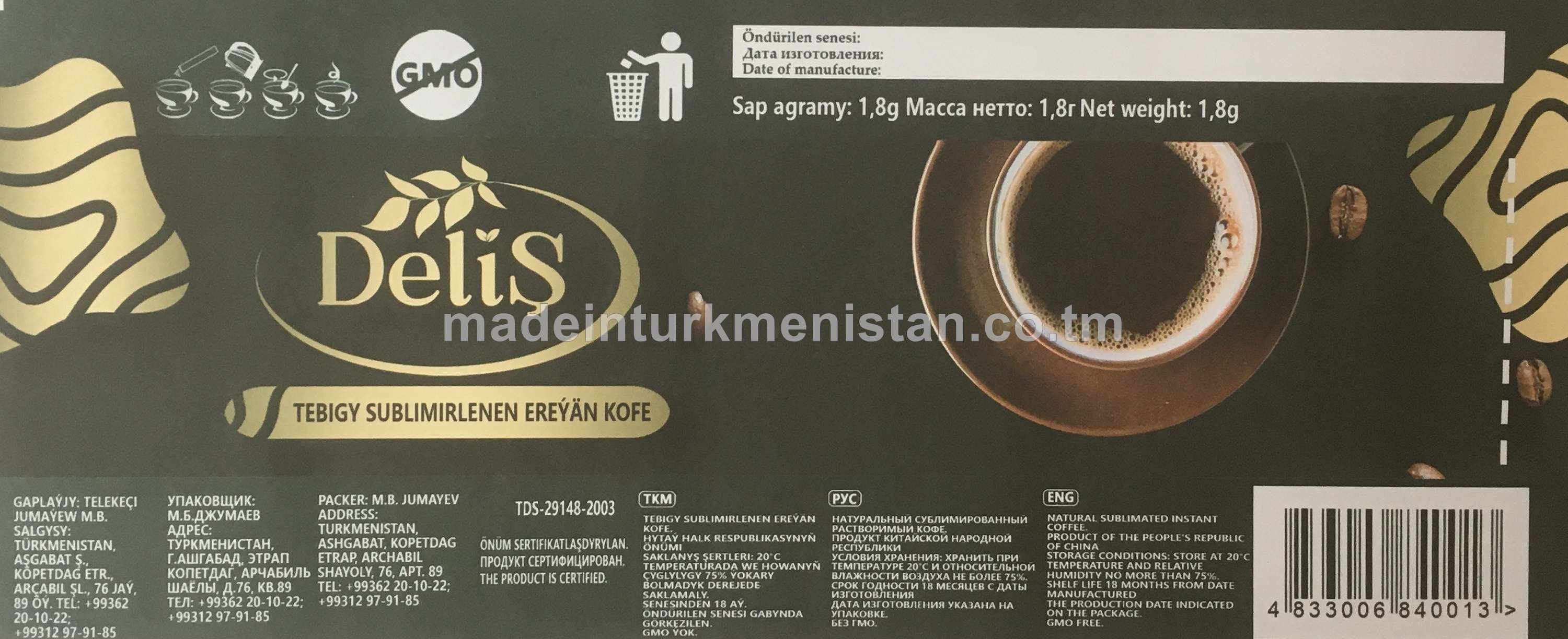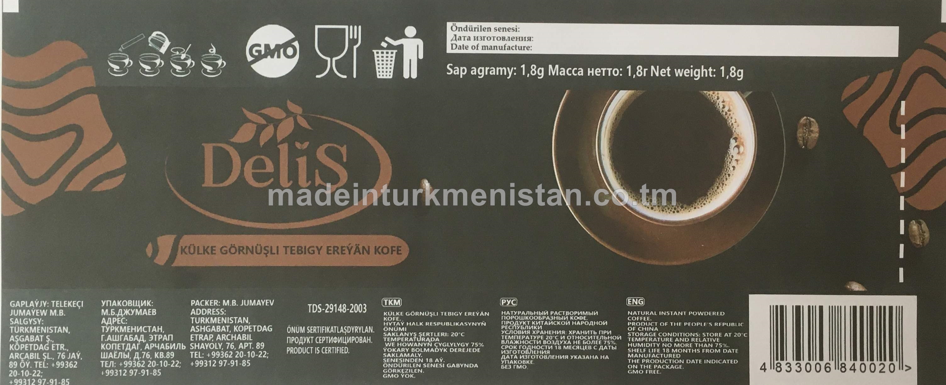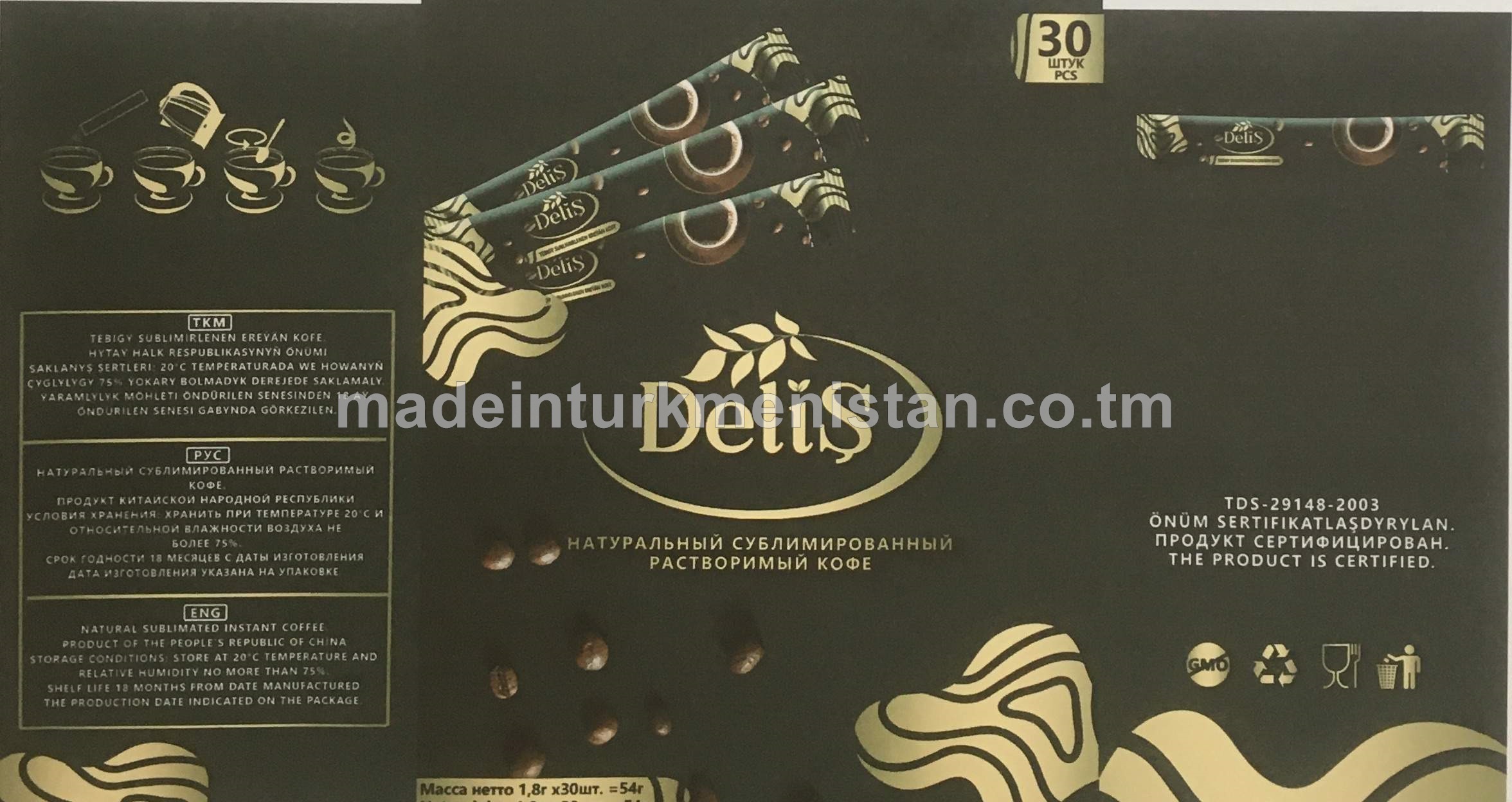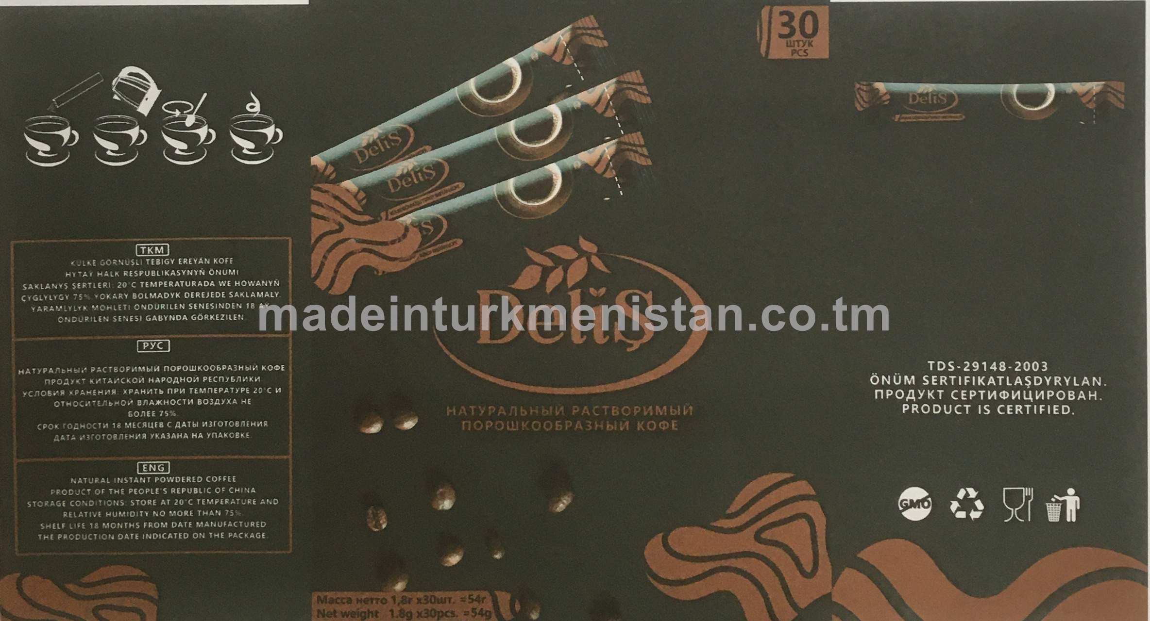 "Deliş" külke görnüşli tebigy ereýän kofe (30x1,8g)