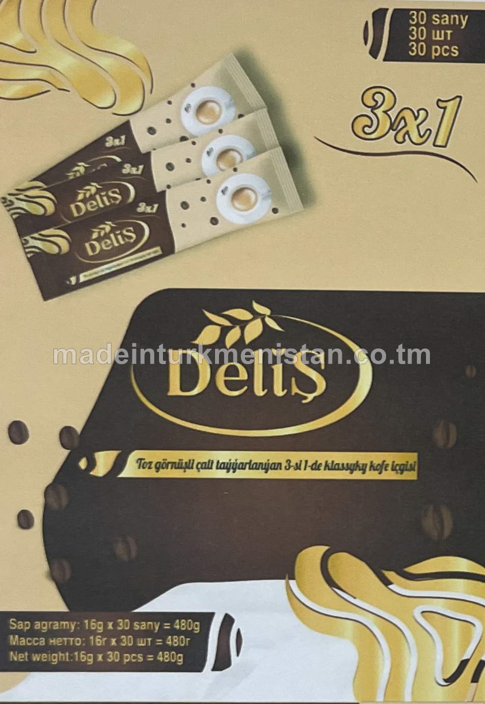 Toz görnüşi çalt taýýarlanylýan 3-si 1-de klassyky kofe içgisi (16g*30sany)