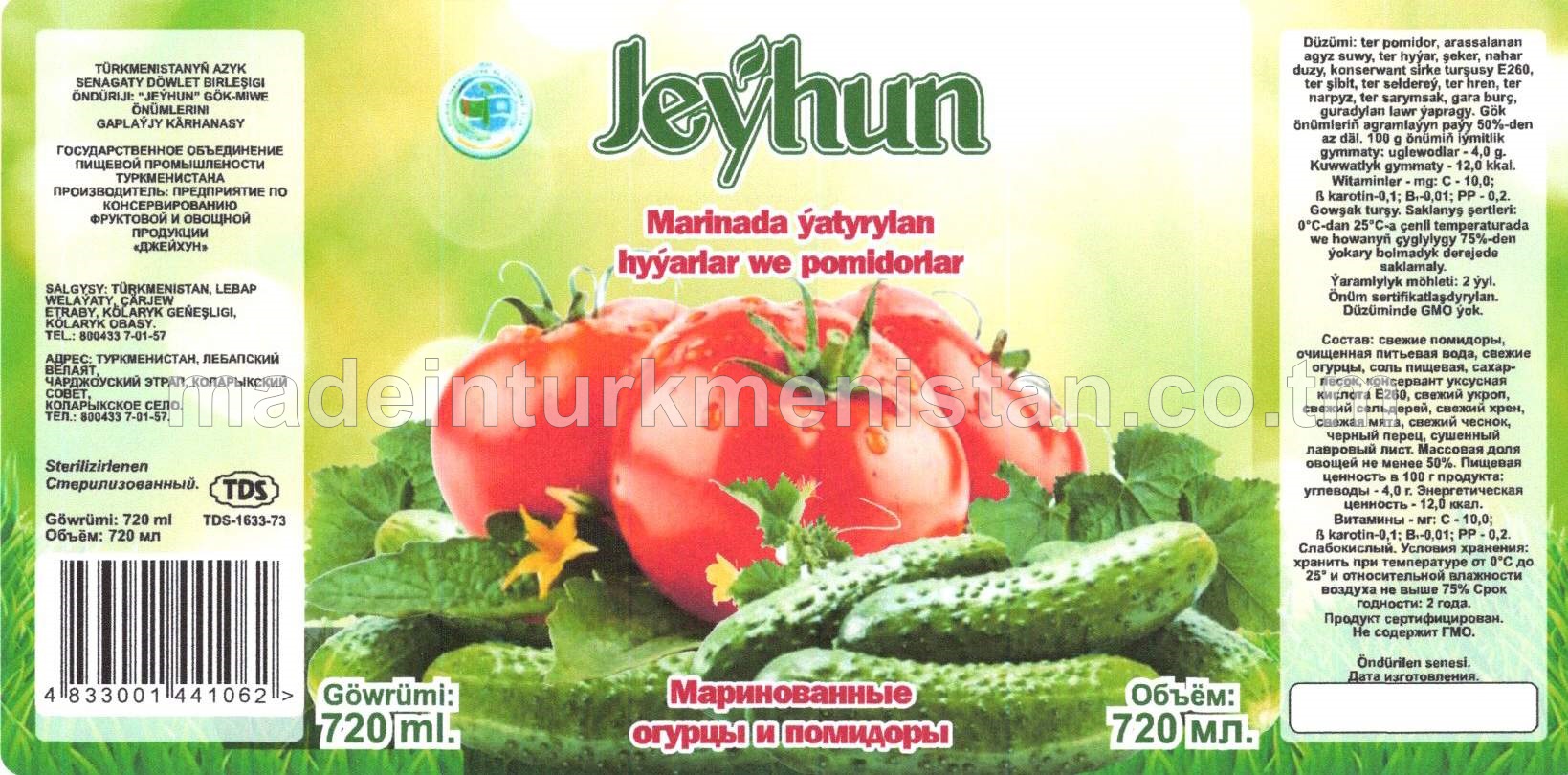 Marinada ýatyrylan hyýarlar we pomidorlar