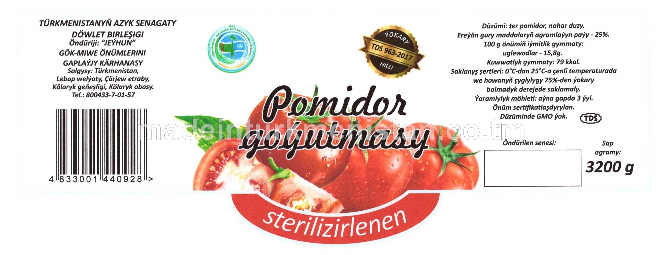 Pomidoryň goýaldylan pýuresinden dikeltmek arkaly taýýarlanan şire