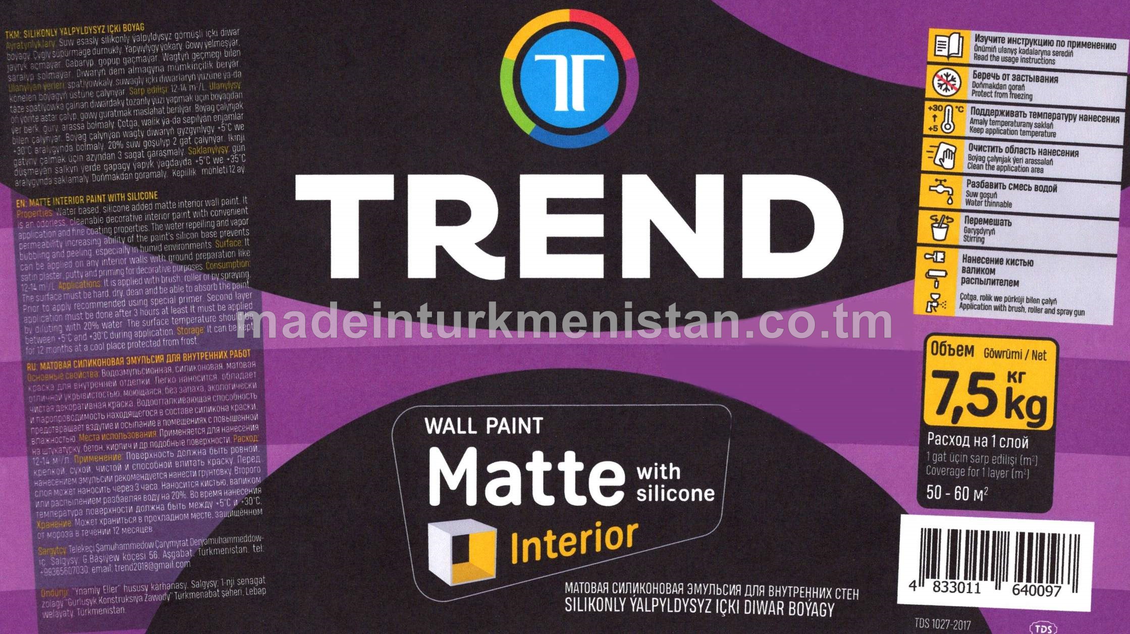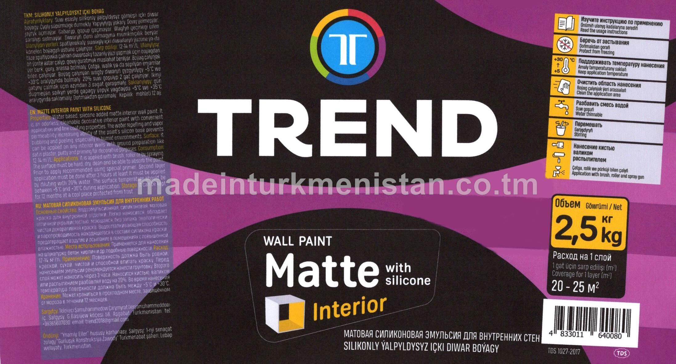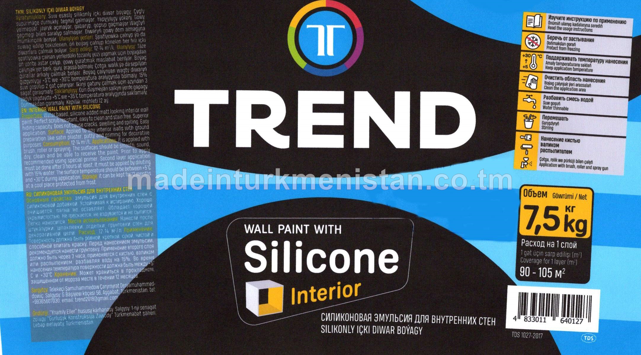 Silikonly ýalpyldysyz içki boýag