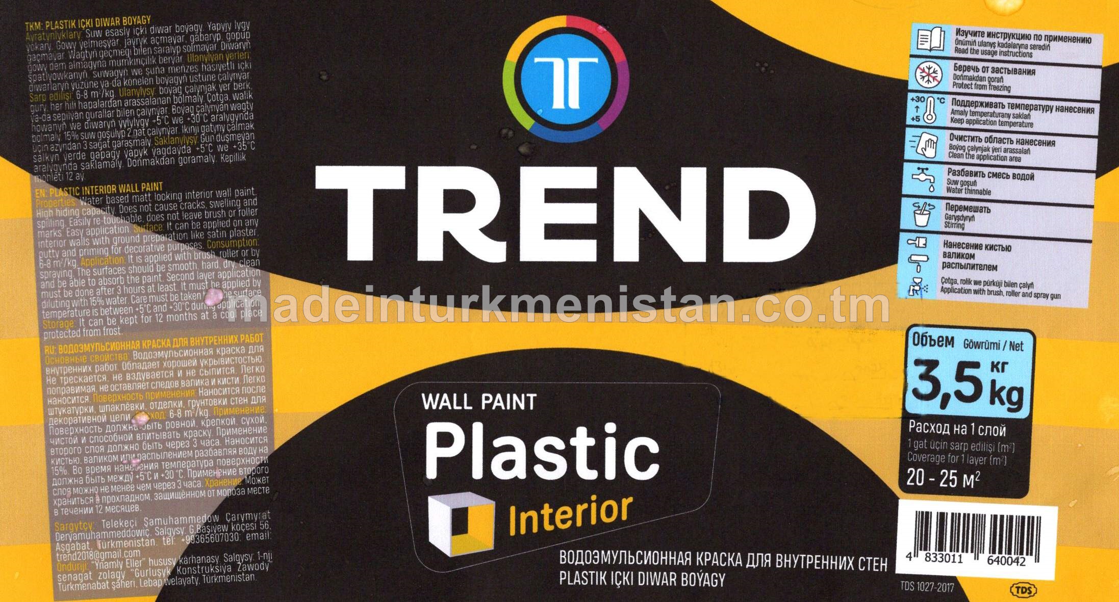 Plastik içki diwar boýagy