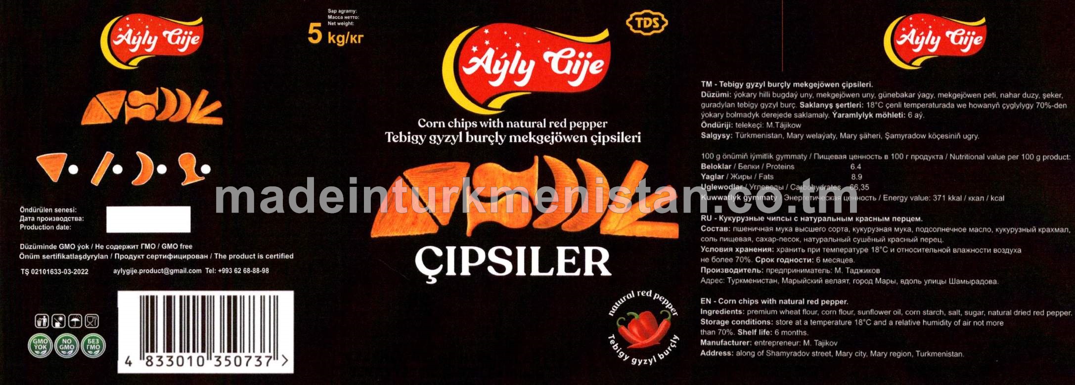 "Aýly gije" tebigy gyzyl burçly mekgejöwen-bugdaý unlaryndan çipsiler