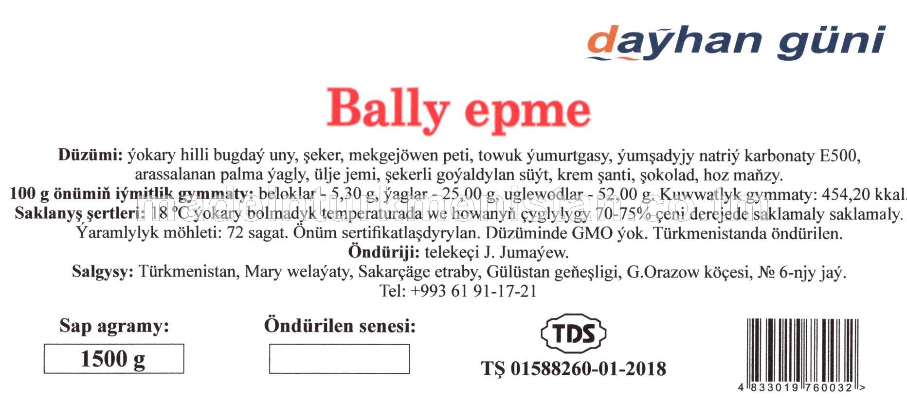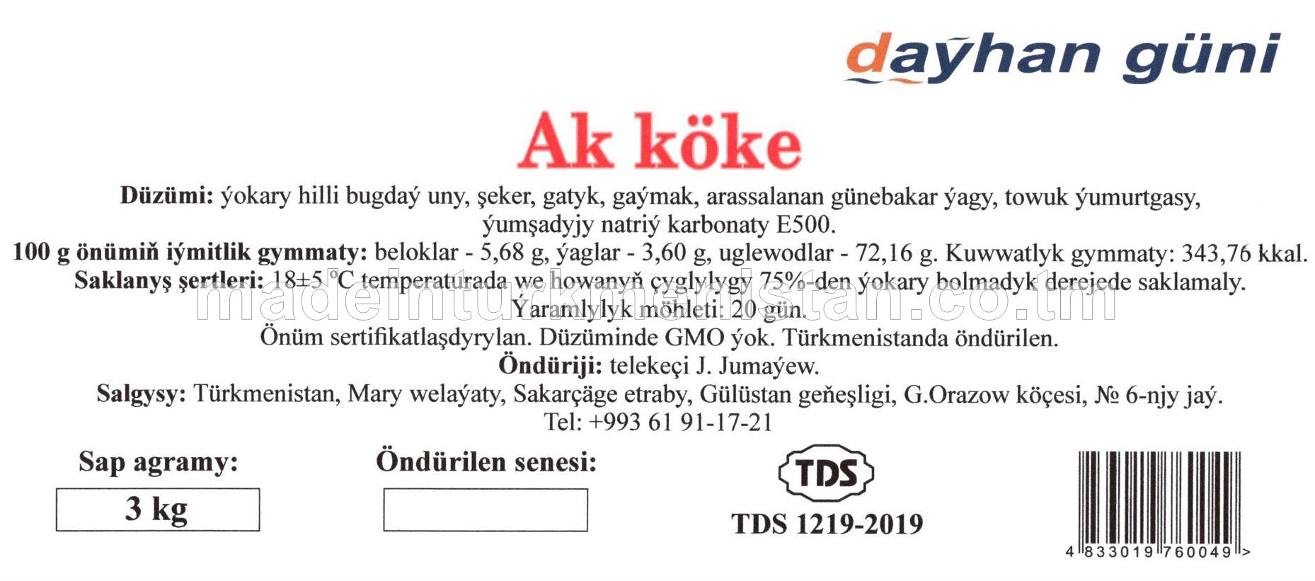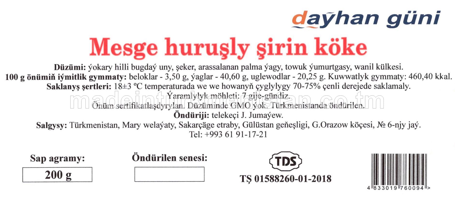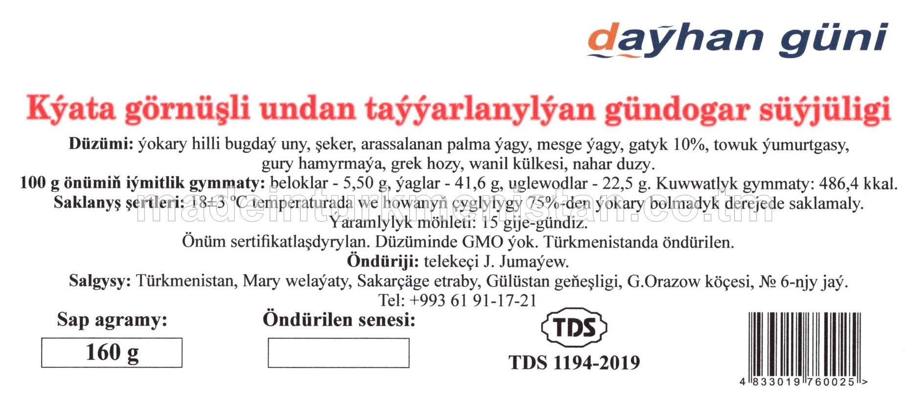 Kýata görnüşli undan taýýarlanylýan gündogar süýjüligi, ýokary hilli