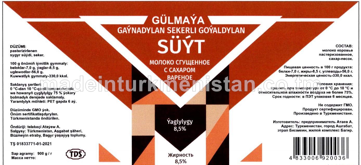 Gaýnadylan şekerli goýaldylan süýt, ýaglylygy 8,5 %