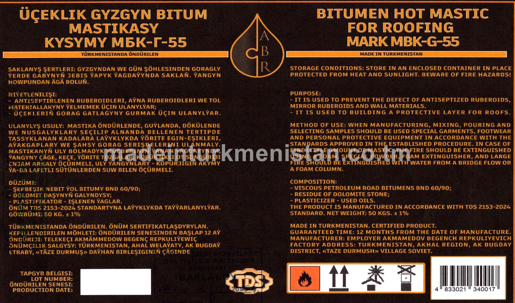 Üçeklik gyzgyn bitum mastikasy kysymy МБК-Г-55