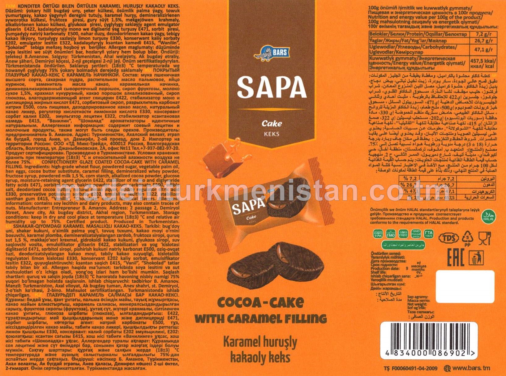 "Sapa" konditer örtügi bilen örtülen karamel huruşly kakaoly keks