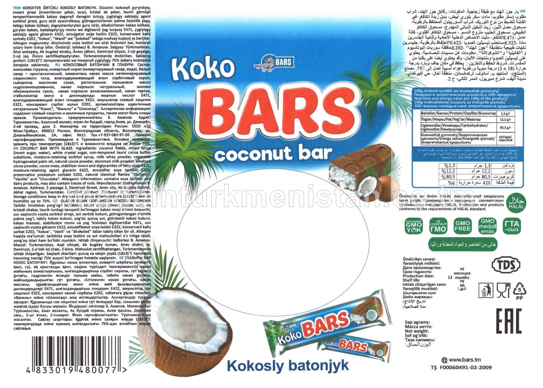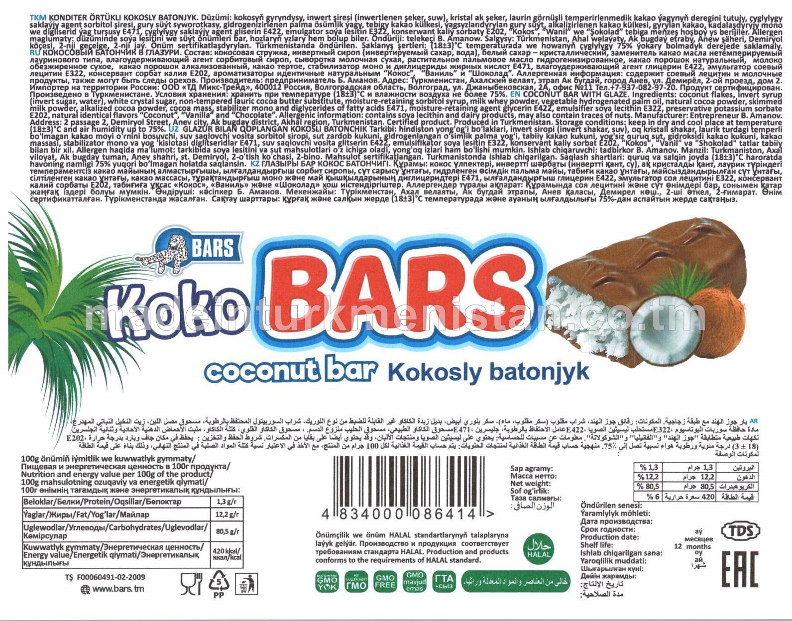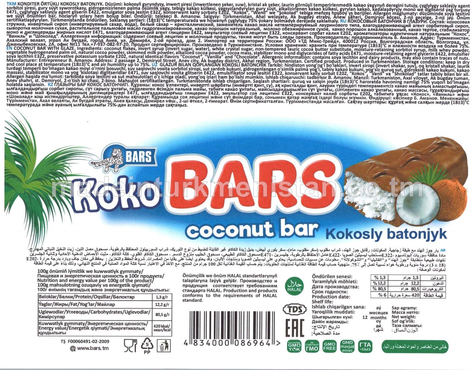 "Koko Bars" konditer örtükli kokosly batonjyk