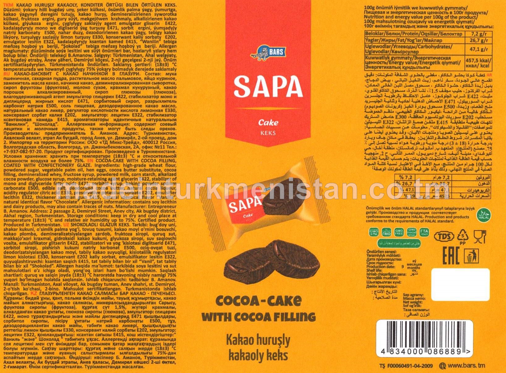 "Sapa" kakao huruşly kakaoly konditer örtügi bilen örtülen keks