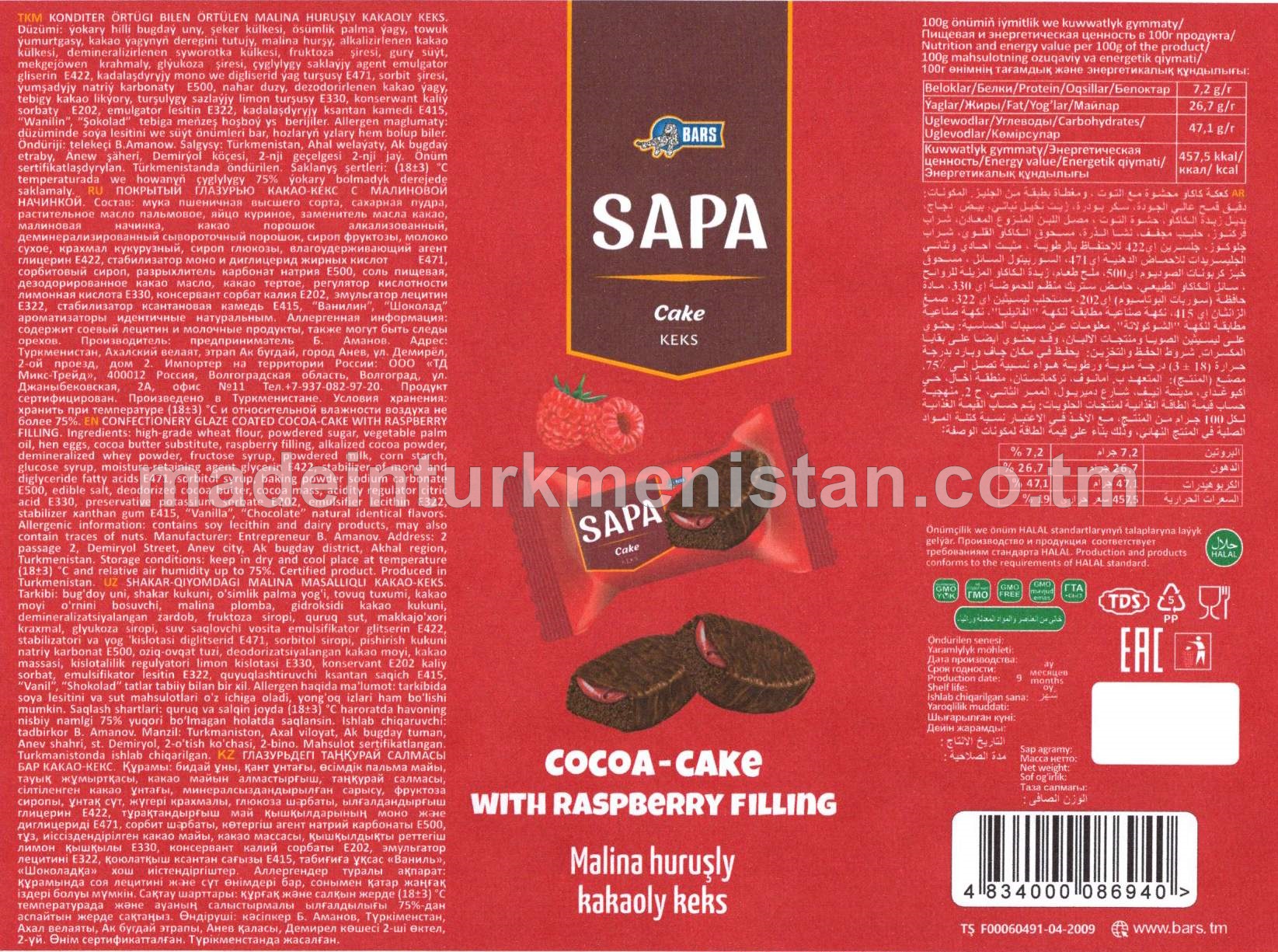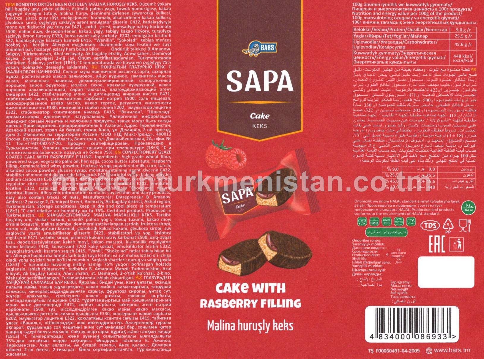 "Sapa" konditer örtügi bilen örtülen malina huruşly keks
