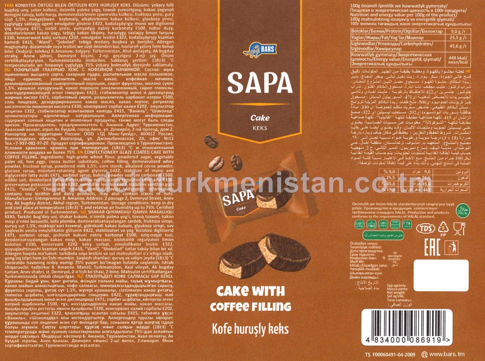 "Sapa" Konditer örtügi bilen örtülen kofe huruşly keks