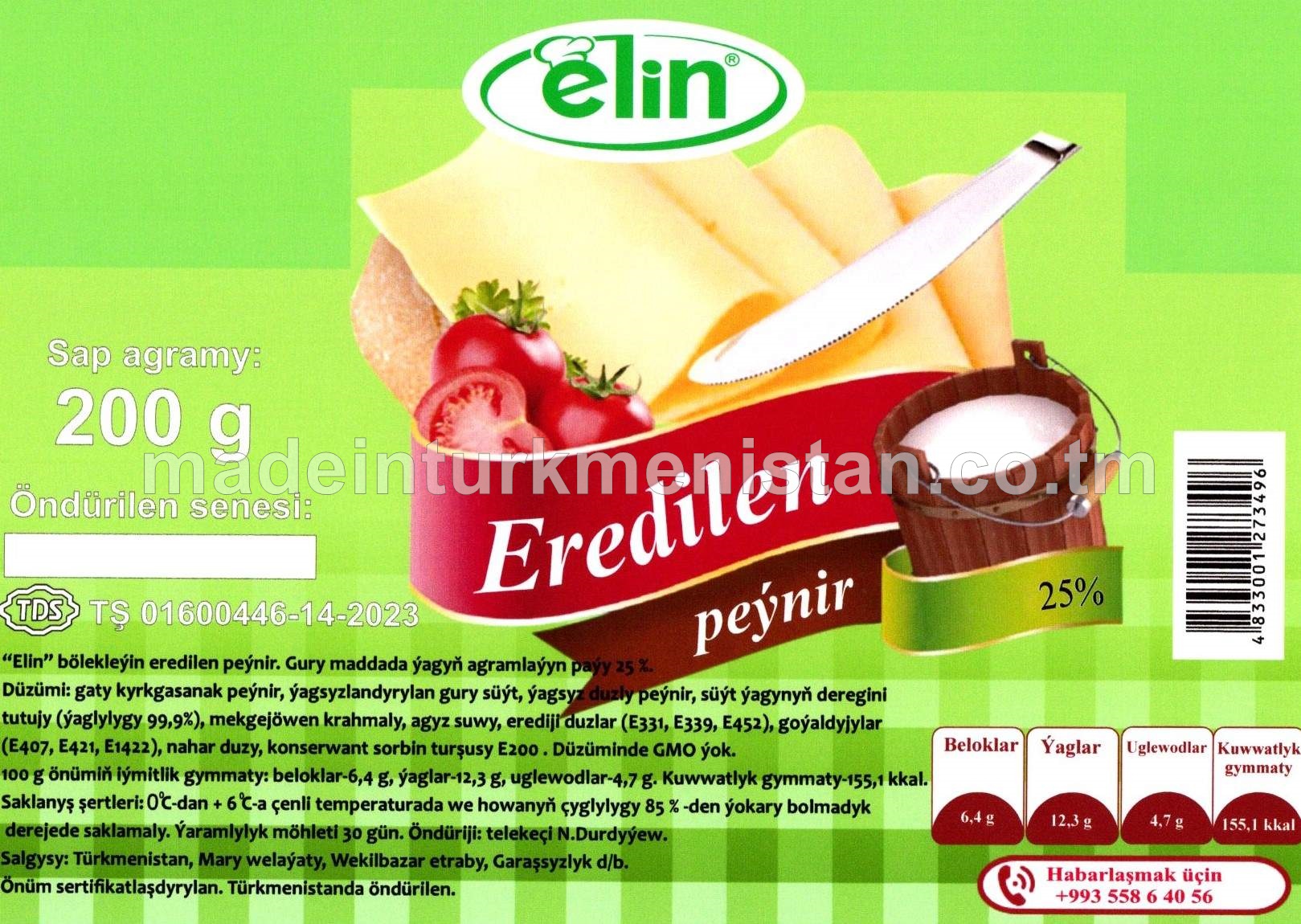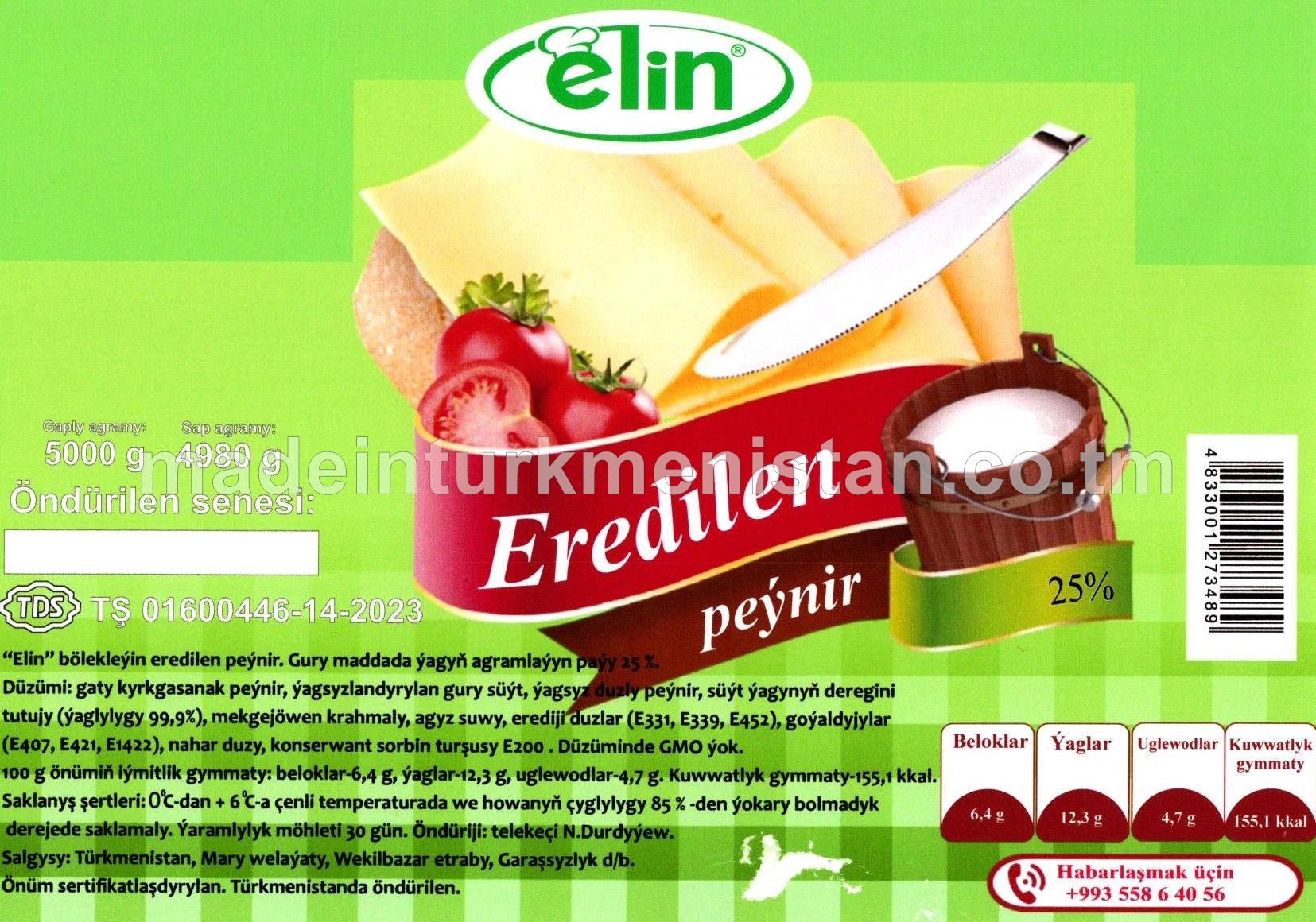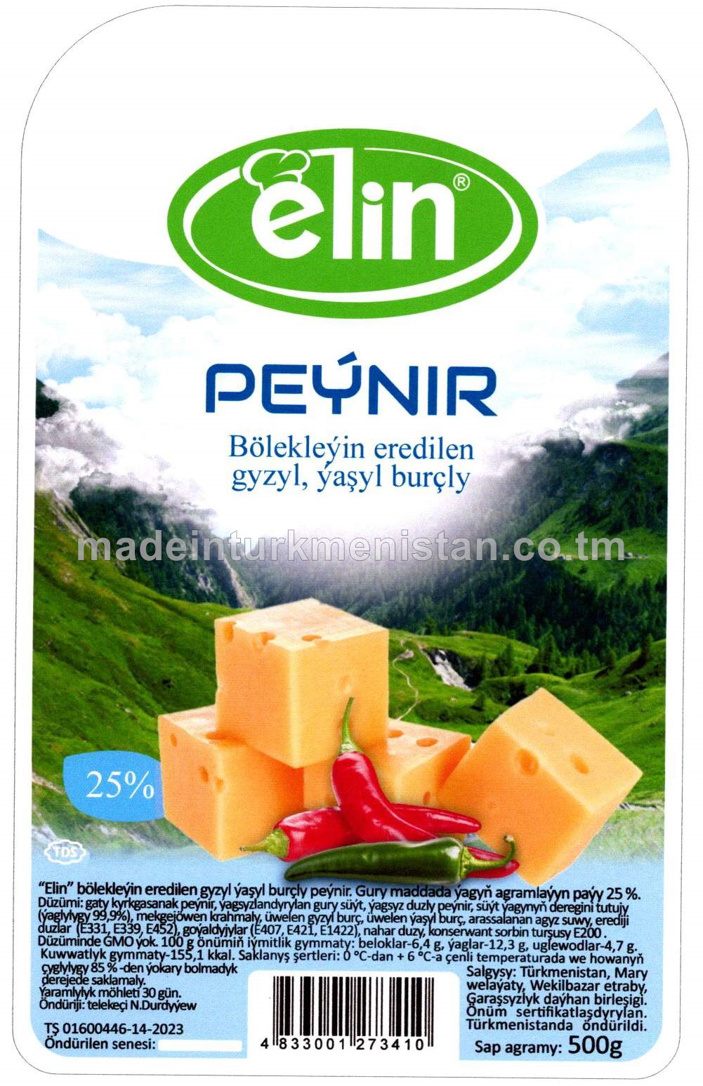 “Elin” bölekleýin eredilen gyzyl ýaşyl burçly peýnir ýaglylygy 25%