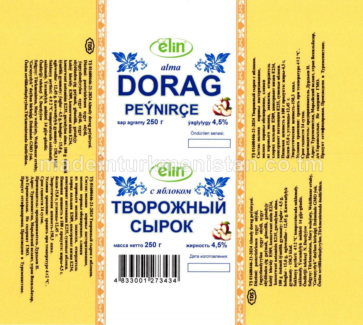 Alma dorag peýnirçe, ýaglylygy 4,5%