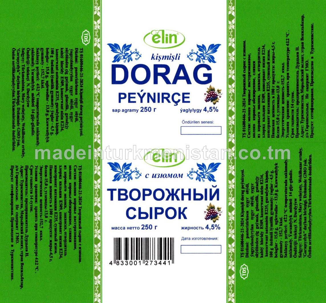 Kişmişli dorag peýnirçe, ýaglylygy 4,5%