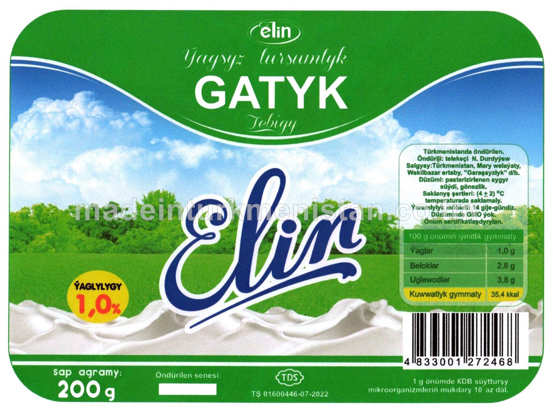 Ýagsyz turşumtyk gatyk, ýaglylygy 1,0 %